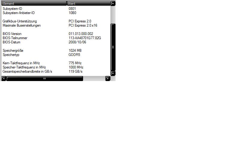 Hi Leute. Also ich hab mir die oben genannte Graka geholt, angeschlossen, alles super. Doch nun ist mir mal was aufgefallen. Bei der Grafikkartenbeschreibung im i-net steht immer eine andere beschreibung als ich bei mir finde. Hier mal n paar Screens