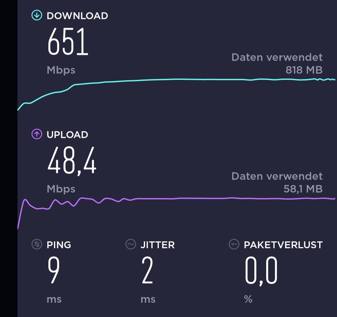 Ich werde es demnächst mit einem S20 FE probieren, ob ich da die 1200Mbit/s am Client in etwa bekomme und dann das Ergebnis hier wieder berichten.