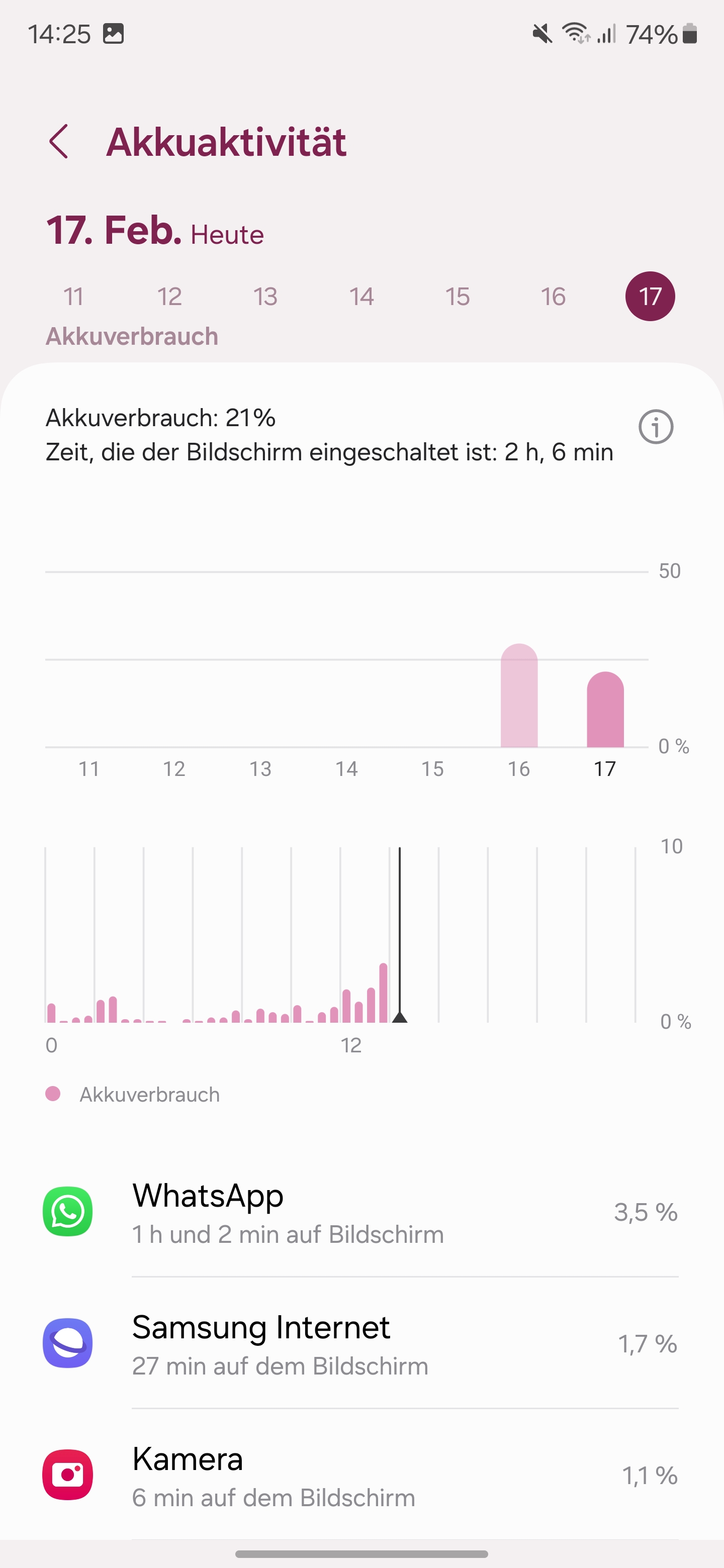 Wie lange warst du denn auf Whatsapp und im Internet unterwegs? War das draußen im hellen Licht?t3chn0 schrieb:Jetzt habe ich noch 83% Akku und ich mache außer Whatsapp und im Internet surfen NICHTS mit dem Teil.