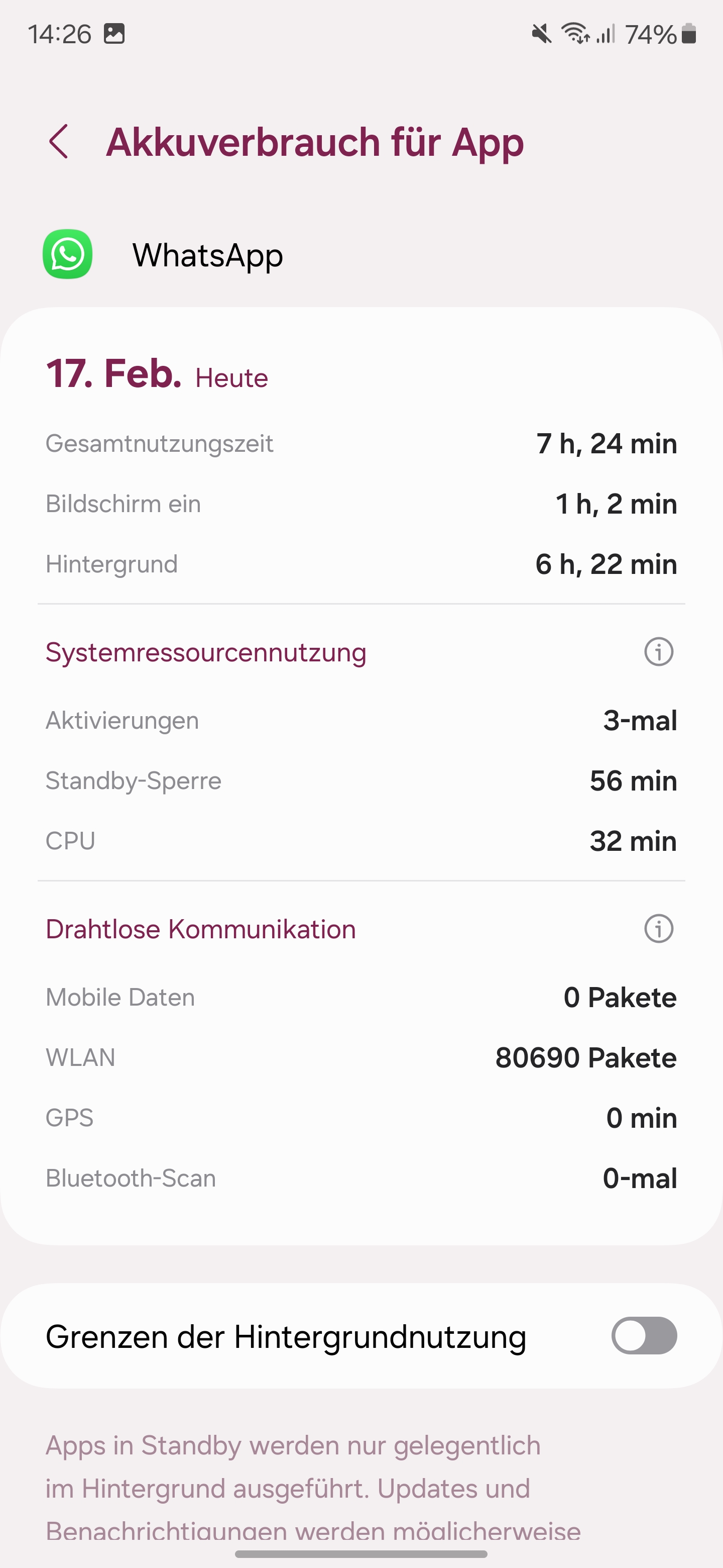 Außerdem, wie andere sagen, geb dem Gerät Zeit. Meins hat eine Woche nach der Einrichtung nochmal ein spürbares Stück mit dem Akkuverbrauch abgenommen.
