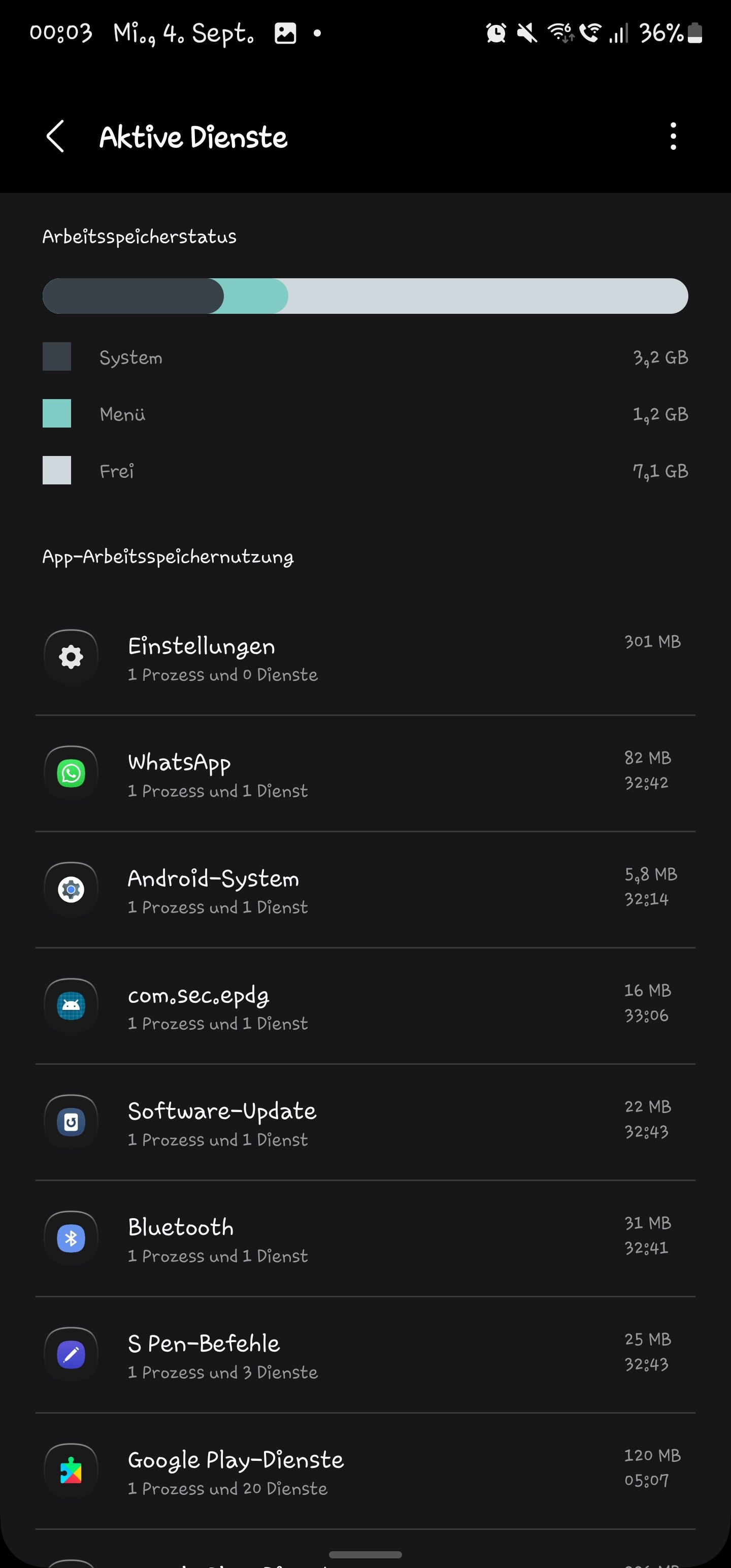 Auch aus dem Akkumenü, in dem der Stromverbrauch für jede App angegeben wird, werde ich nicht schlau. Rechne ich alles was dort steht + Always on Display zusammen sollte ich bei 3h DoT laut dieser Info rund 35% akku verbrauchen. In der realität sind es aber eher 90%.