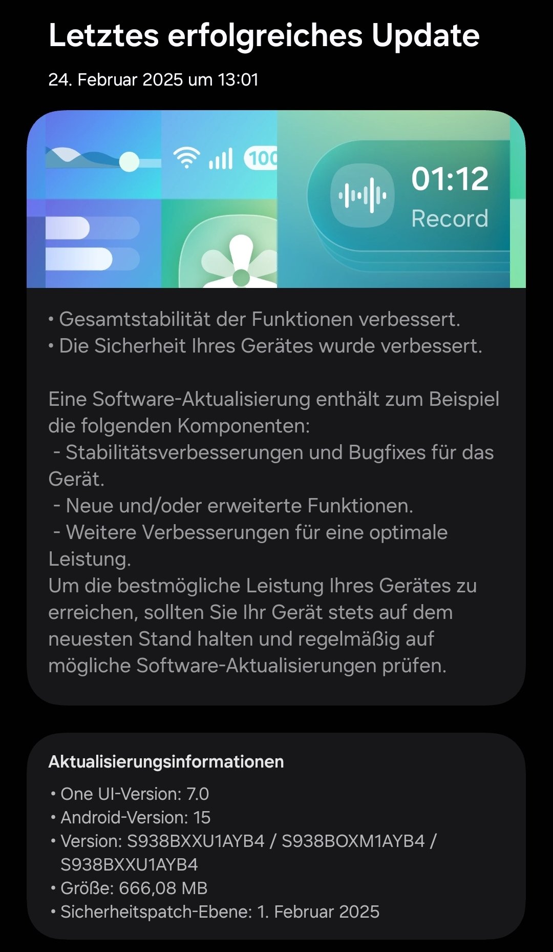 Also mein S24 FE hat Patch Level von Februar 25 und Google Play Systemupdate von Januar 25.