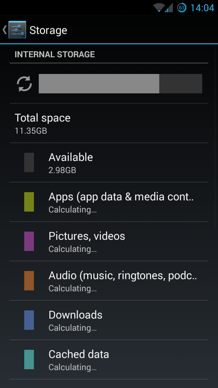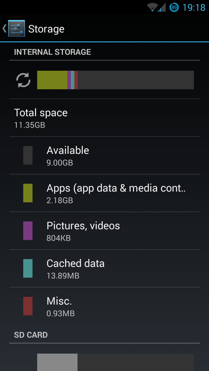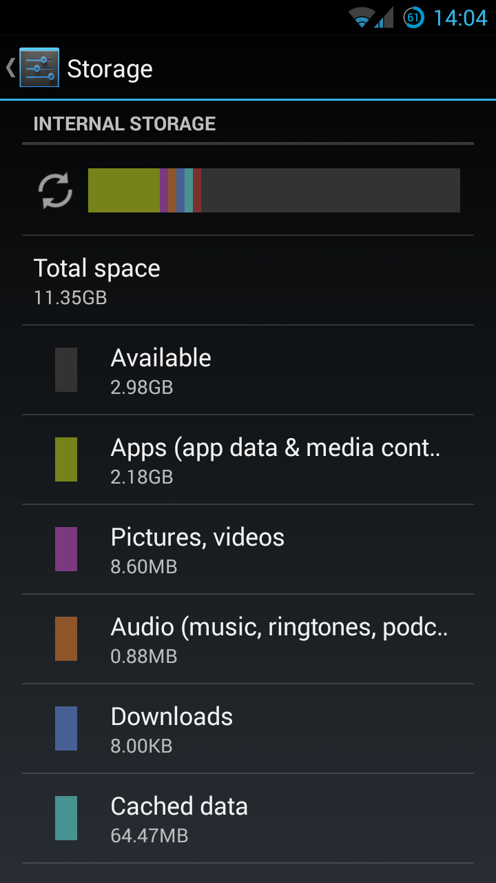 CM 10.2: Gesamtspeicher - 11,35gb; frei - 2,98gb
