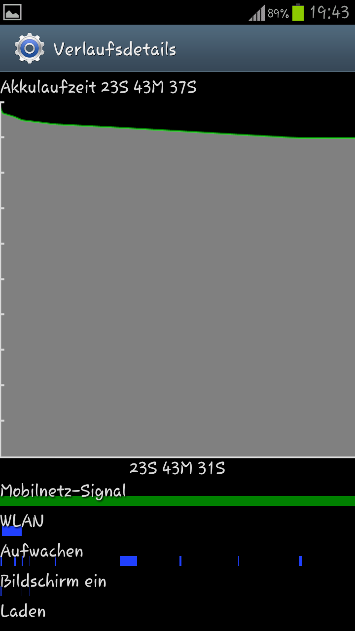 Hab das ganze noch mit nem zweiten S3 gegengetestet, vielleicht war ja der Akku nicht ganz inordnung. Aber auch hier das selbe Ergebnis. Viel zu kurze Laufzeit. Dabei hab ich immer darauf geachtet, alle Programme im Hintergrund zu schließen (was bei iOS auch unnötig ist) und hab überprüft, ob das Handy auch wirklich vollständig in den Stand by geht und nicht ständig durch irgendwelche prozesse aufgeweckt wird. Flugmodus wurde auch genutzt, wlan und bluetooth waren deaktiviert usw.