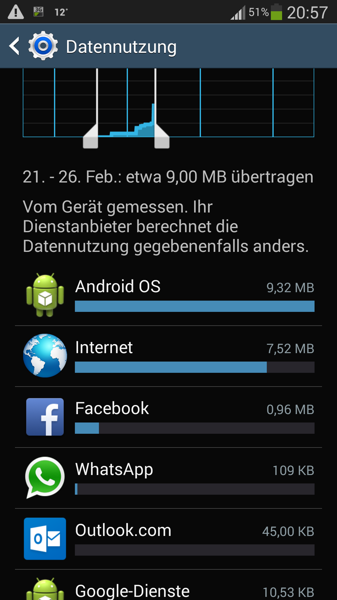 Und noch eine Frage : oben wo steht wie viel mb übertragen wurden wird nicht alles zusammengerechnet , wenn man sich den verbrauch der einzelnen sachen ansieht , ist das normal oder stimmt da was nicht?