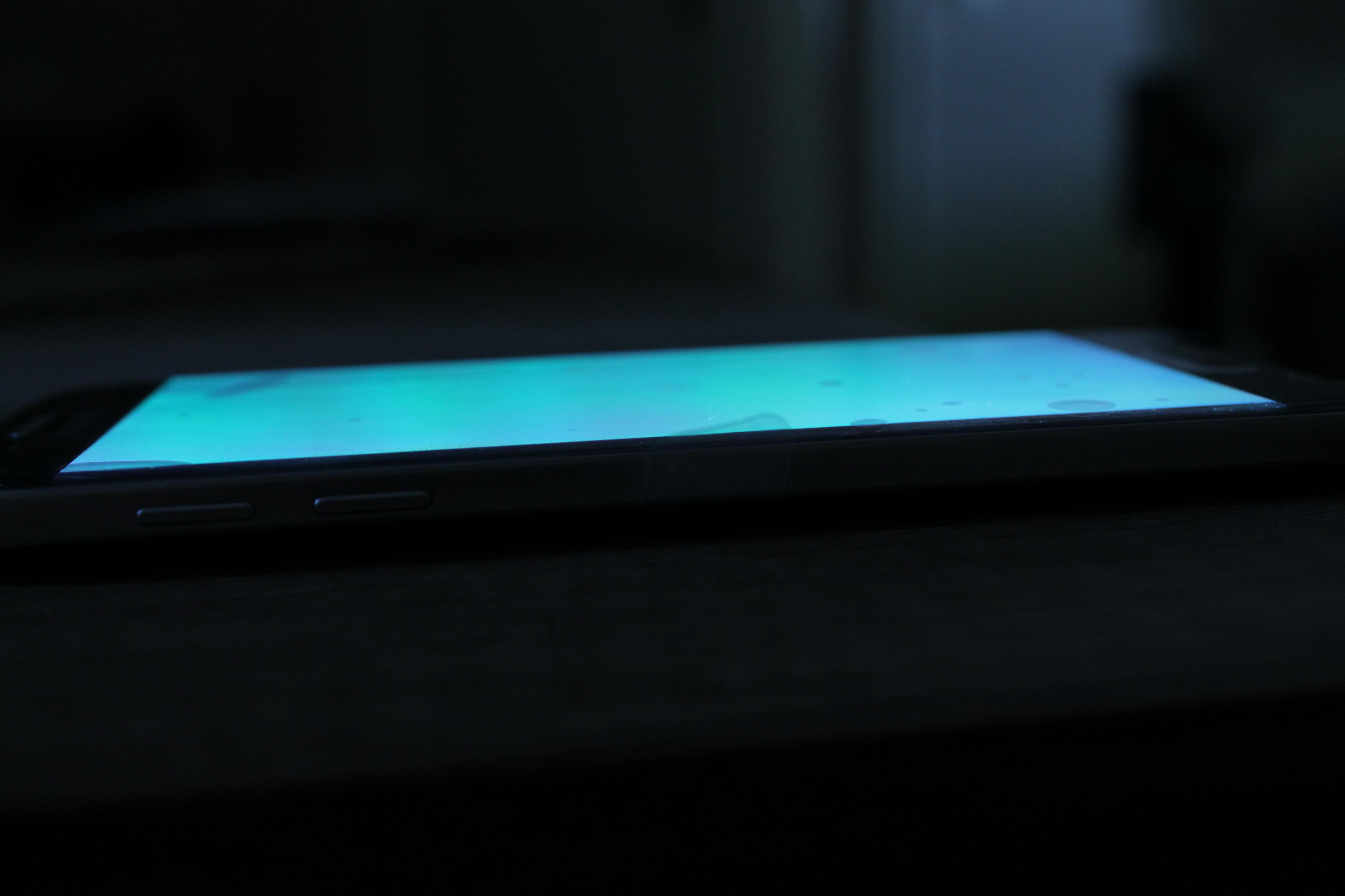 Je nach dem wie ich das Handy halte, also je nach Blickwinkel, schimmert es rötlich, grünlich. Extrem ist es, wenn man in einem sehr steilen Winkel aufs Display schaut. Zu sehen vor allem bei weißen Hintergründen. Nur wenn man genau grade auf das Display schaut ist es weiß.
