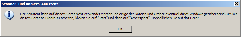 Da kann ich nur auf "OK" drücken, und das ist dann Endstation. Ein Zugriff auf die Dateien ist nicht möglich.