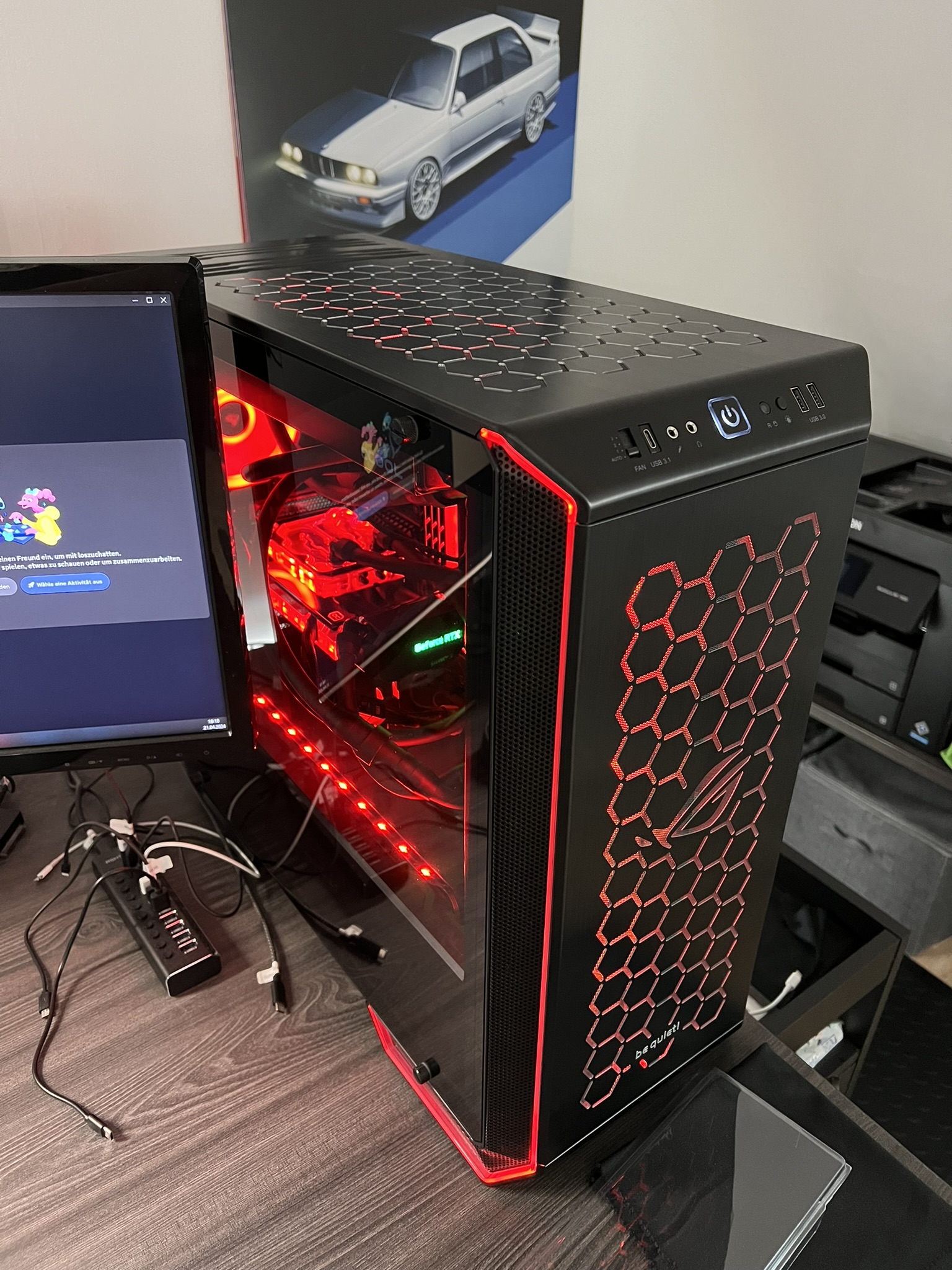 Verbaut sind aktuell ein 11900k (5Ghz Grundtakt aktuell) auf einem Maximus Hero 13 mit 64GB DDR4 (4x 16GB 3600Mhz CL14) G.Skill Tridenz Neo & einer 3090 FE (auch übertaktet), sowie 4x Samsung 980 Pro SSD & 1 990 PRO M2.