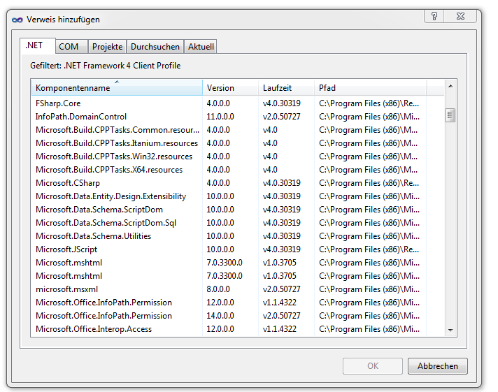 In deinem Projekt gibt es einen Unterpunkt "Verweise", dort muss dieser dann hinzugefügt werden.