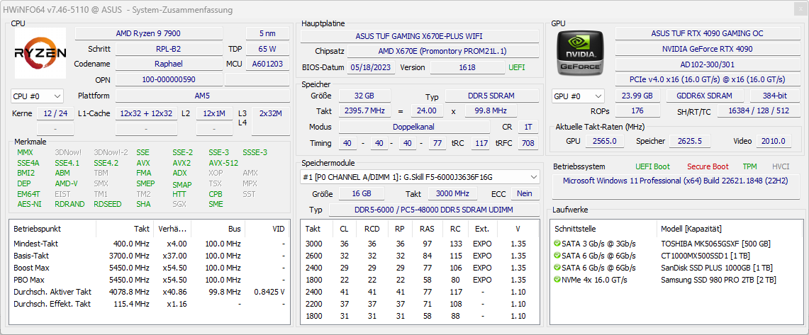 - Grafikkarte: ASUS TUF 4090 OC