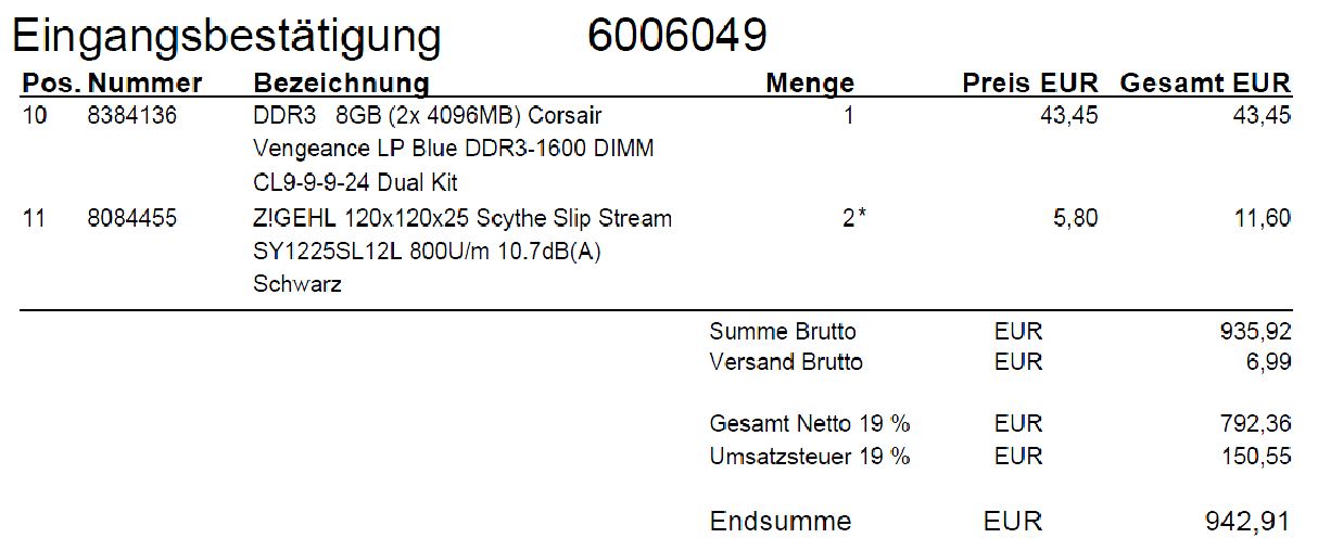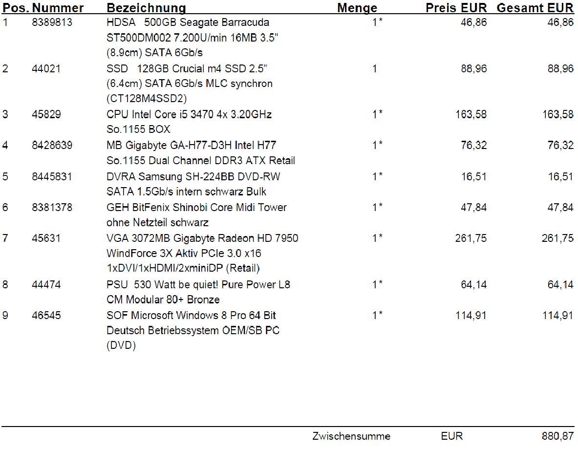 Nur habe ich die 16 GB Arbeitsspeicher in 8 GB geändert. Alles andere ist so geblieben.