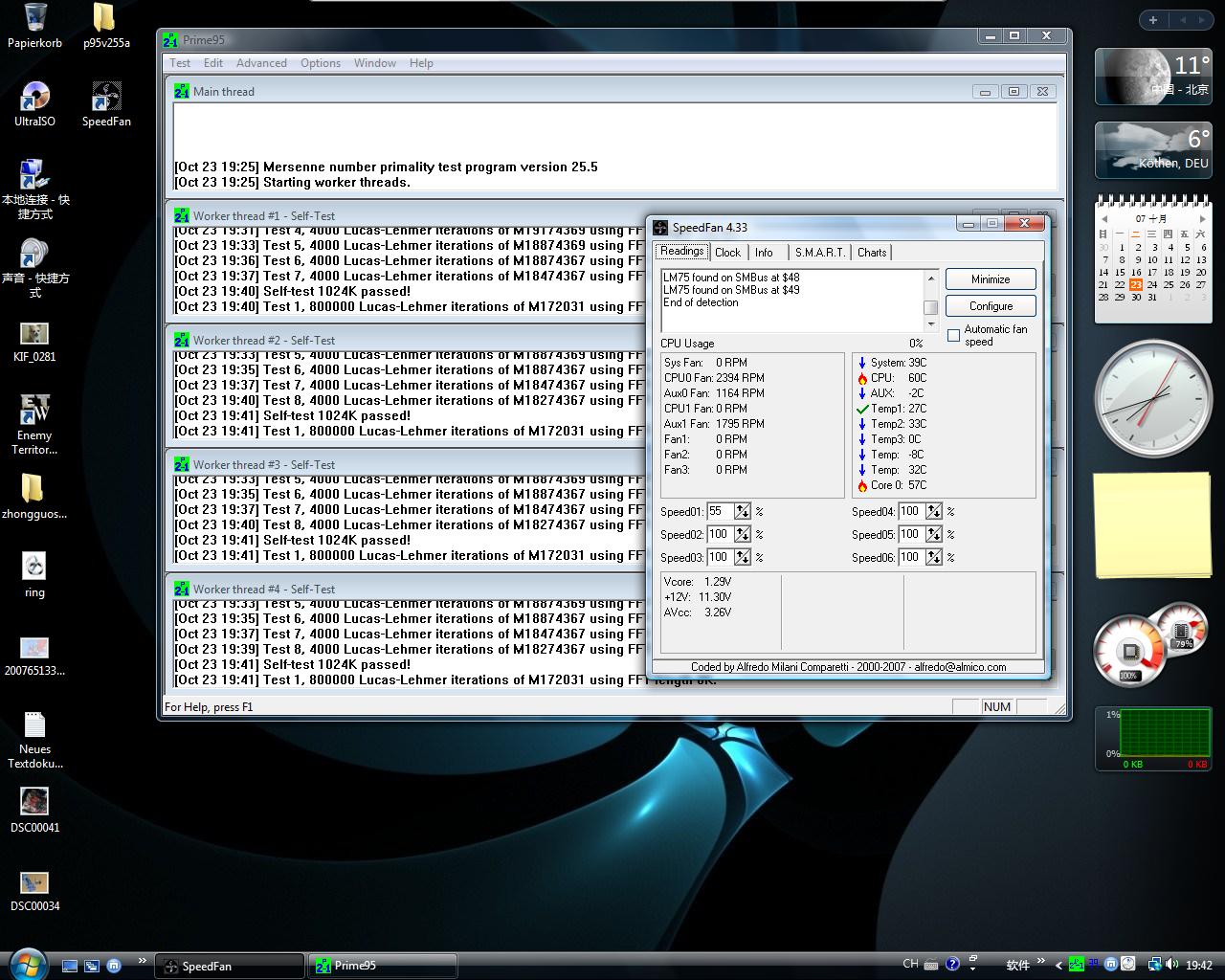 Danke für die Aussagen, wenn ich mit Speedfan die Temp. beim laufenden Prime95 nach 15min. messe, dort wird max. Wert von 60Grad gezeigt.