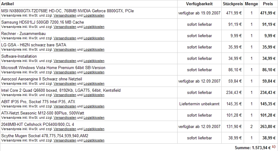 Gehäuse fehlt noch, was du selbst nach deinem Geschmack wählen kannst und ich habe vorerst nur 2 GB Ram gewählt. Kein Spiel braucht bis jetzt mehr als 2 GB.