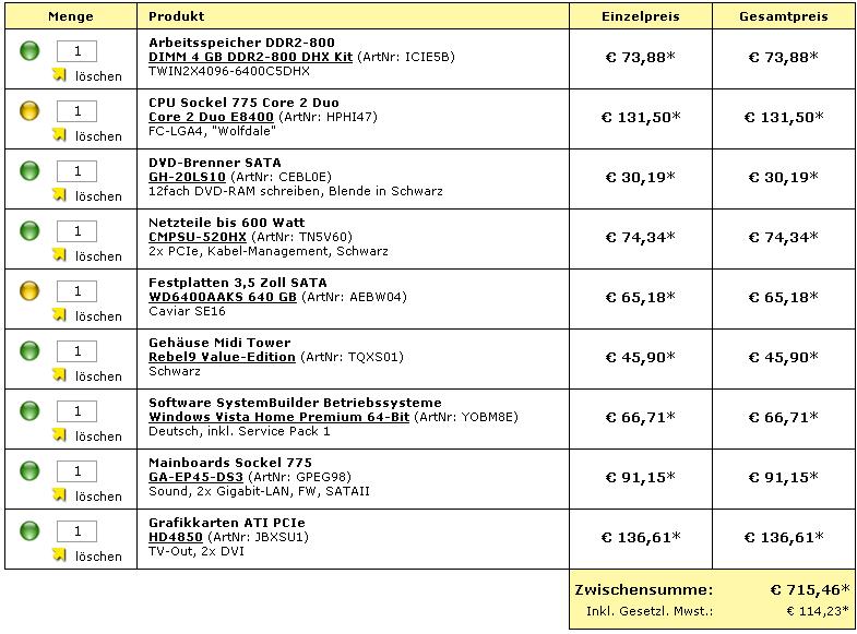 Es sollte alles dabei sein. Also mit Windows Vista (oder doch das alte XP?) und Gehäuse.
