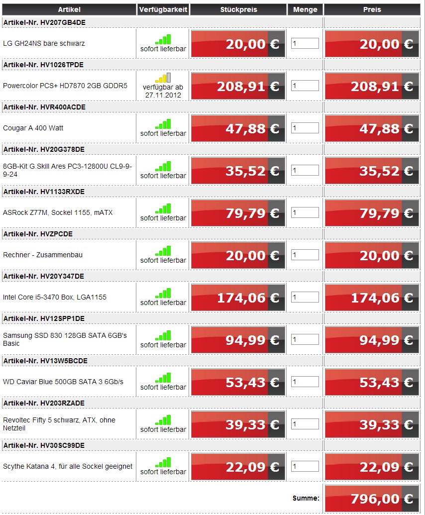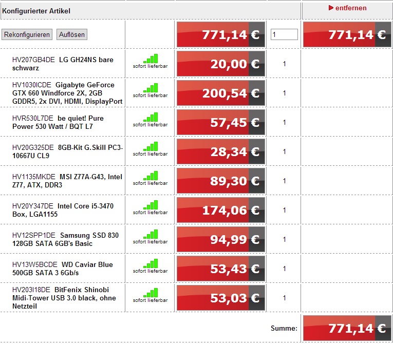 Und wie gesagt, es müsste alles vom gleichen Händler kommen, der dann auch zusammenbaut.