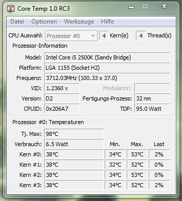 Intel i5 2500k mit Box Kühler