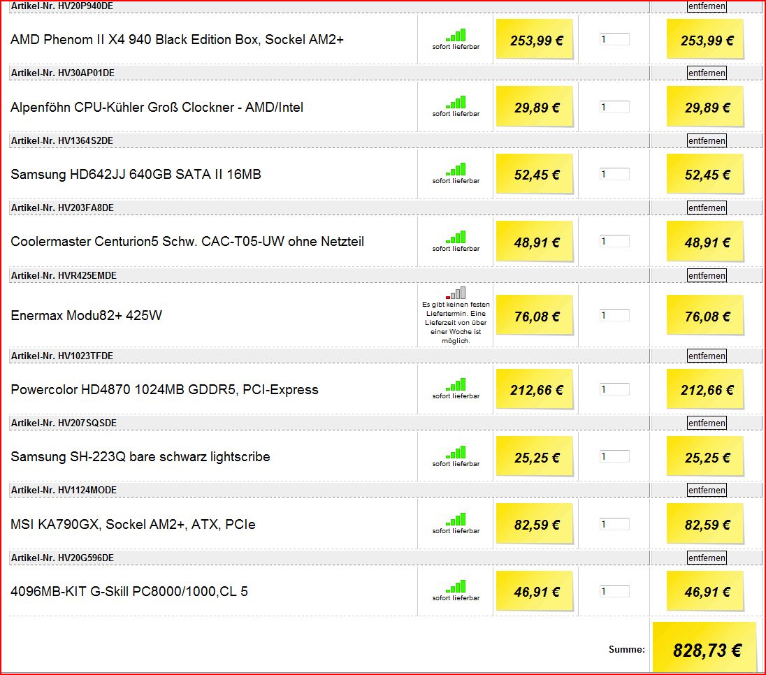 das enermax ist leider nicht lieferbar. Gehäuse dann das Coolermaster Centurion . HDD ok.