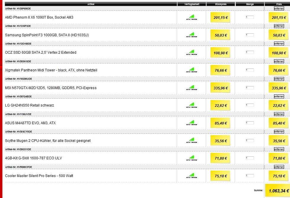Ich habe hier mal eine Zusammenstellung gemacht und würde gerne wissen ob auch alles passt so wie es da ist. Reicht das Netzteil ? Meine Frage die sich mir nach Heute stellt ist auch ob ich eine 6950 kaufen soll und die flashen soll ? Nur danach ist die Garantier natürlich weg. Außerdem würde Ich gerne wissen ob das mit dem Mugen 2 klar geht denn ich habe schon oft gelesen das viele manche Rams nicht einbauen können wegen der Größe.