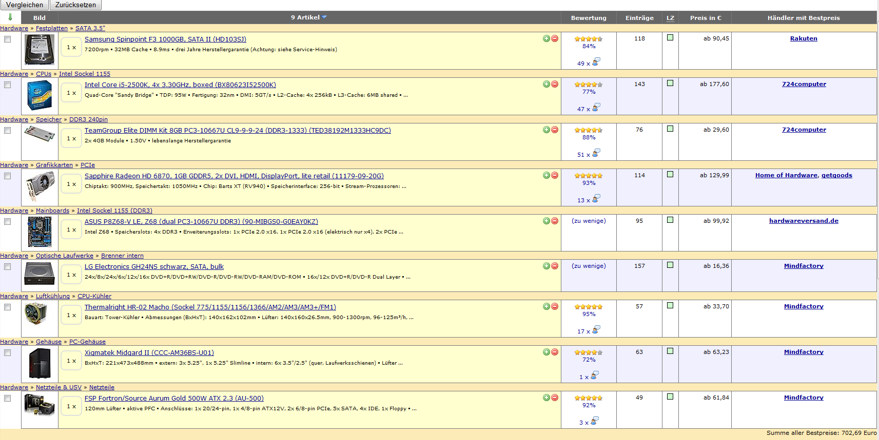 Sind meine Vorstellungen zu hoch? Am liebsten wäre mir mind. i7 2600k, 4*3,6 ghz (mind. 3,1 ghz)