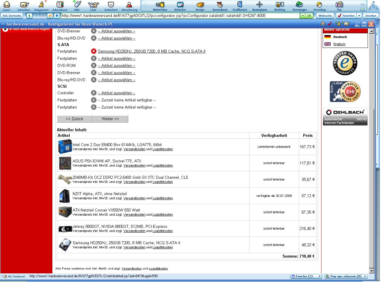 Wenn dann noch das Netzteil im Bereich von 430-450 Watt liegt waer es doch optimal, dann kannste die letzte Konfig bestellen.