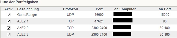ich sitze bereits seit über 2 Stunden an einem Problem bezüglich des Beitritts in einem Age of Empires 2 welches mit GameRanger gestartet wird. Ich spiele insgesamt mit zwei weiteren Bekannten zusammen. Ich hoste das Spiel. Mein Bekannter A kann problemlos beitreten, während bei meinem Bekannten B kein Beitritt möglich ist. Wenn Bekannter B hostet, können ich und mein anderer Bekanter (A) nicht beitreten. Ich verdächtige daher ein Problem mit der Portfreigabe.