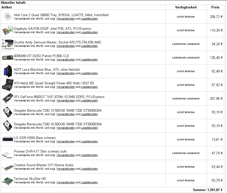 Der PC sollte komplett bei Hardwareversand zusammengebaut werden, also auch nur Komponenten vorschlagen die dort verfügbar sind.