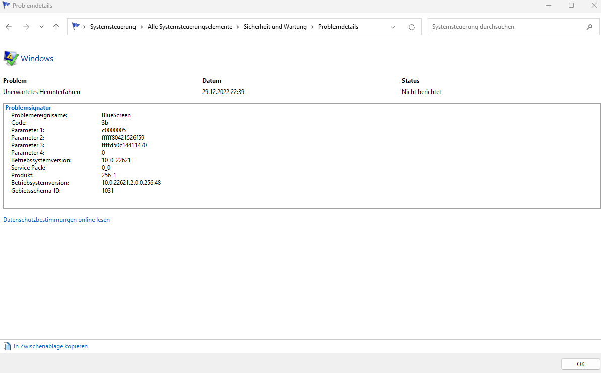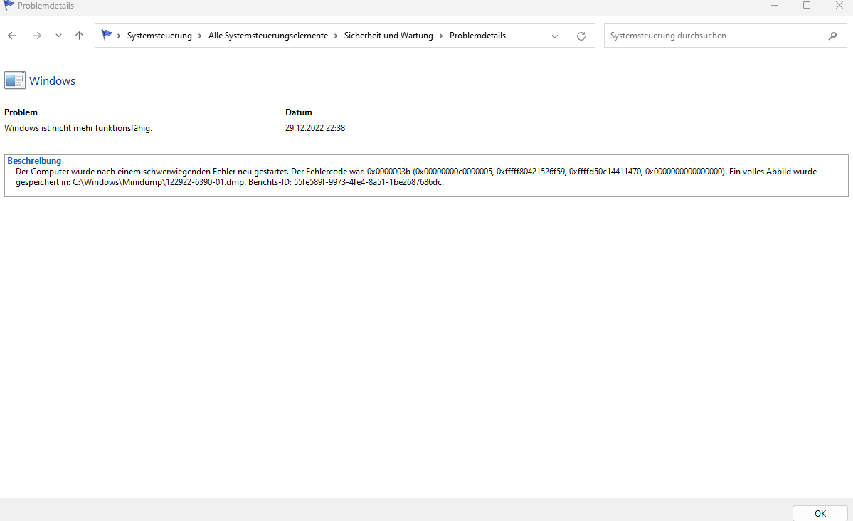 Diese Fehler passieren die ganze Zeit, ohne Ausnahmen. Mit dem vorigen Mainboard und dem Prozessor liefen beide Spiele (natürlich mit reduzierten fps) sehr gut und ohne Abstürze. Na gut, bei Warzone habe ich auch schon vorher ab und zu einen Absturz gehabt. Aber nicht regelmäßig und vor allem nicht bei anderen Spielen.