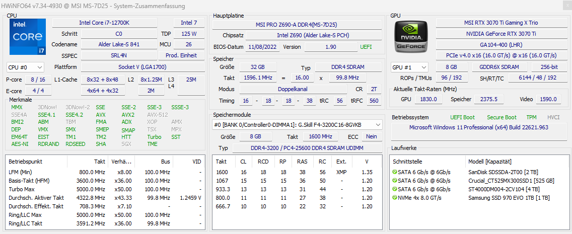 - Prozessor (CPU): Intel Core i7 12700K 3.60GHz