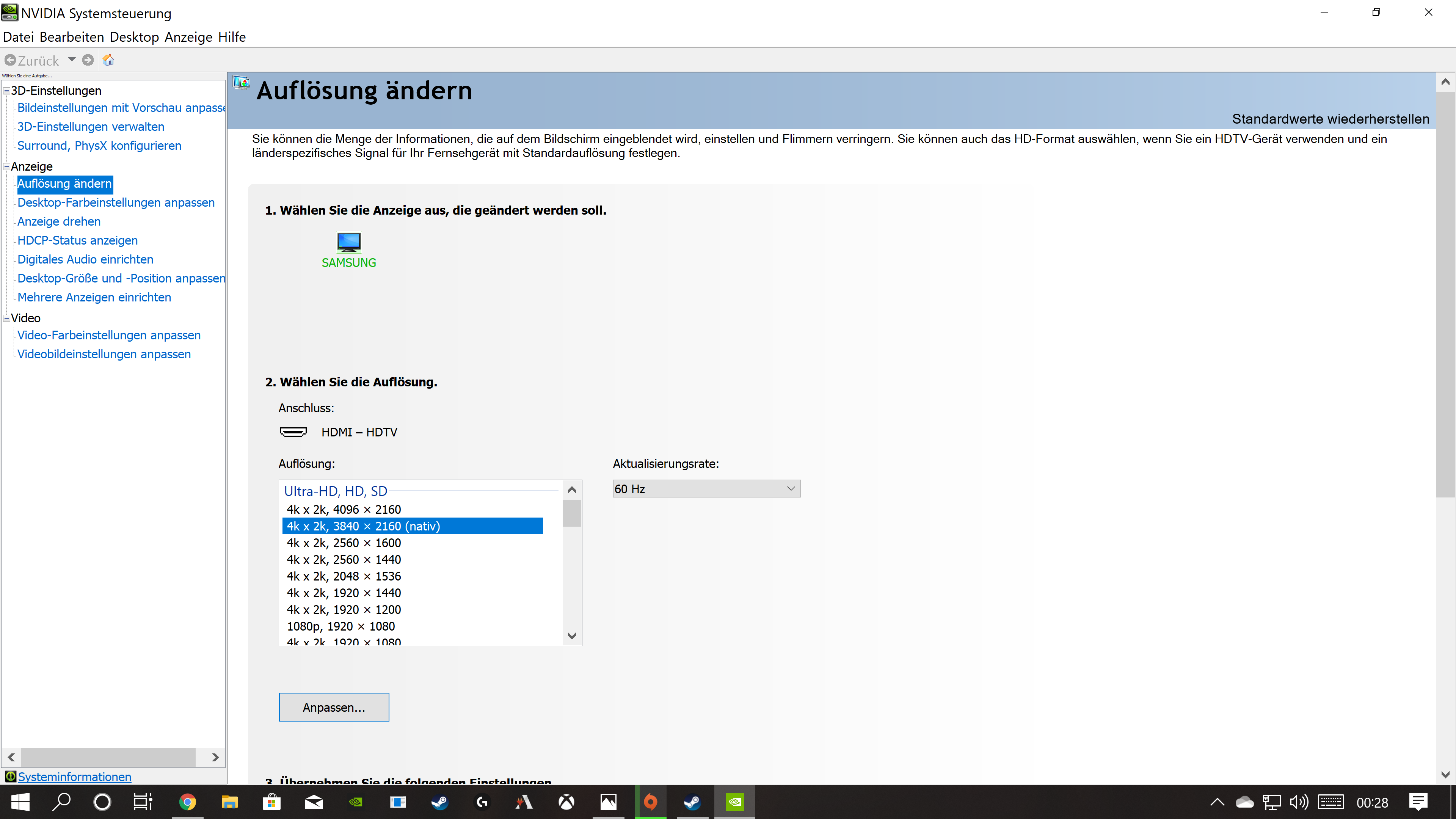 Was mir nach dem Neuinstallieren noch aufgefallen ist, das ich im Nvidia Control Panel, bei der Auflösung nicht mehr den Reiter "PC" in Blau habe, sondern nur noch "Ultra HD, HD, SD" wie auf dem Screenshot zusehen. Davor konnte ich unter PC, dann 2560x1440mit bis zu 120Hz auswhälen, jetzt ist diese auflösung nur unter dem Ultra HD zeugs und gibt nur maximal 30Hz her.