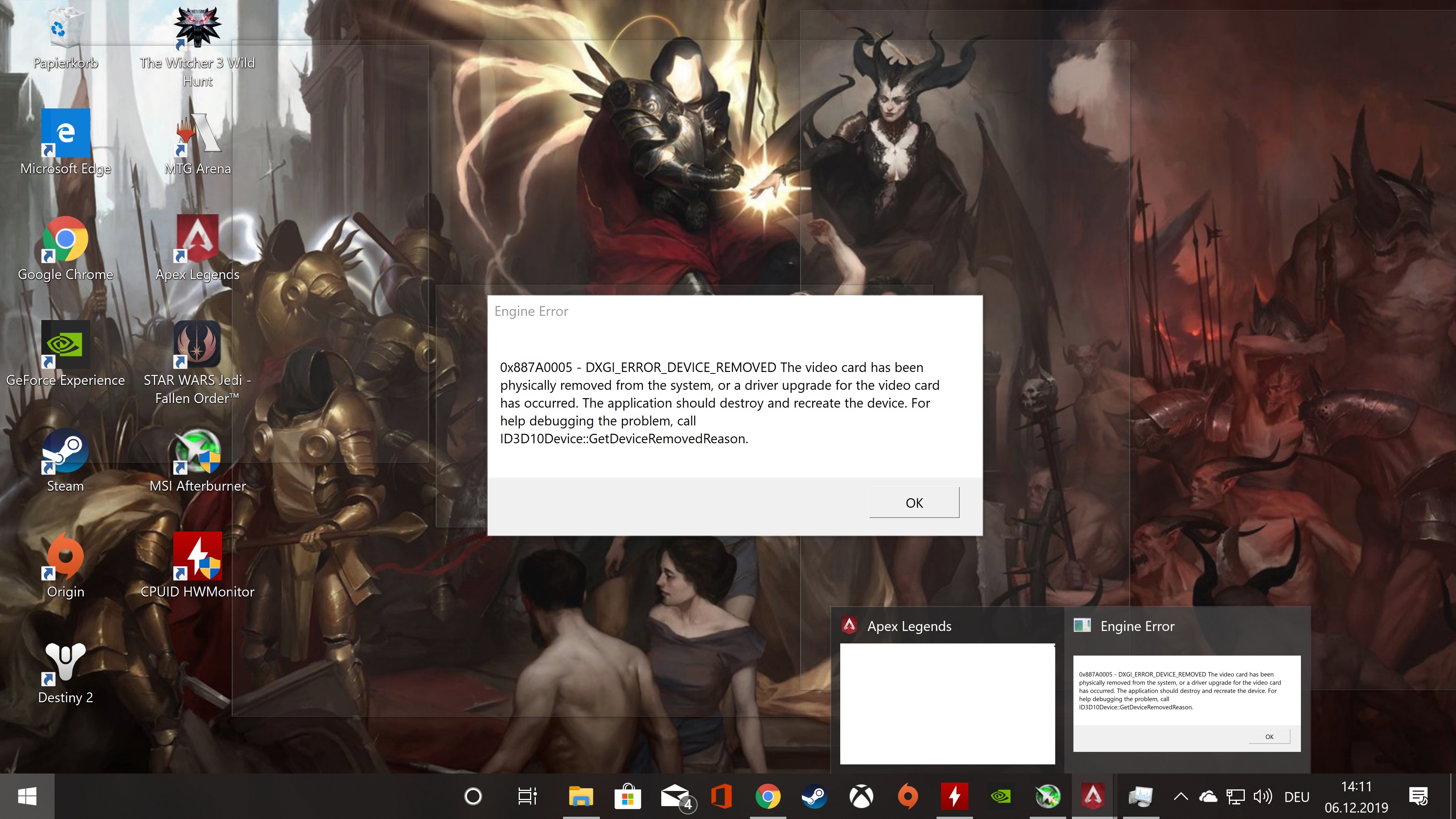 Ganz sicher? Ich muss wirklich gewissheit haben was ich machen soll.TheRealX schrieb:Das zweite Bild von Jedi: Fallen order deutet auf jeden fall auf Defekte Grafikkarte hin. Da kannst du eigentlich direkt eine Reklamierung anstoßen!