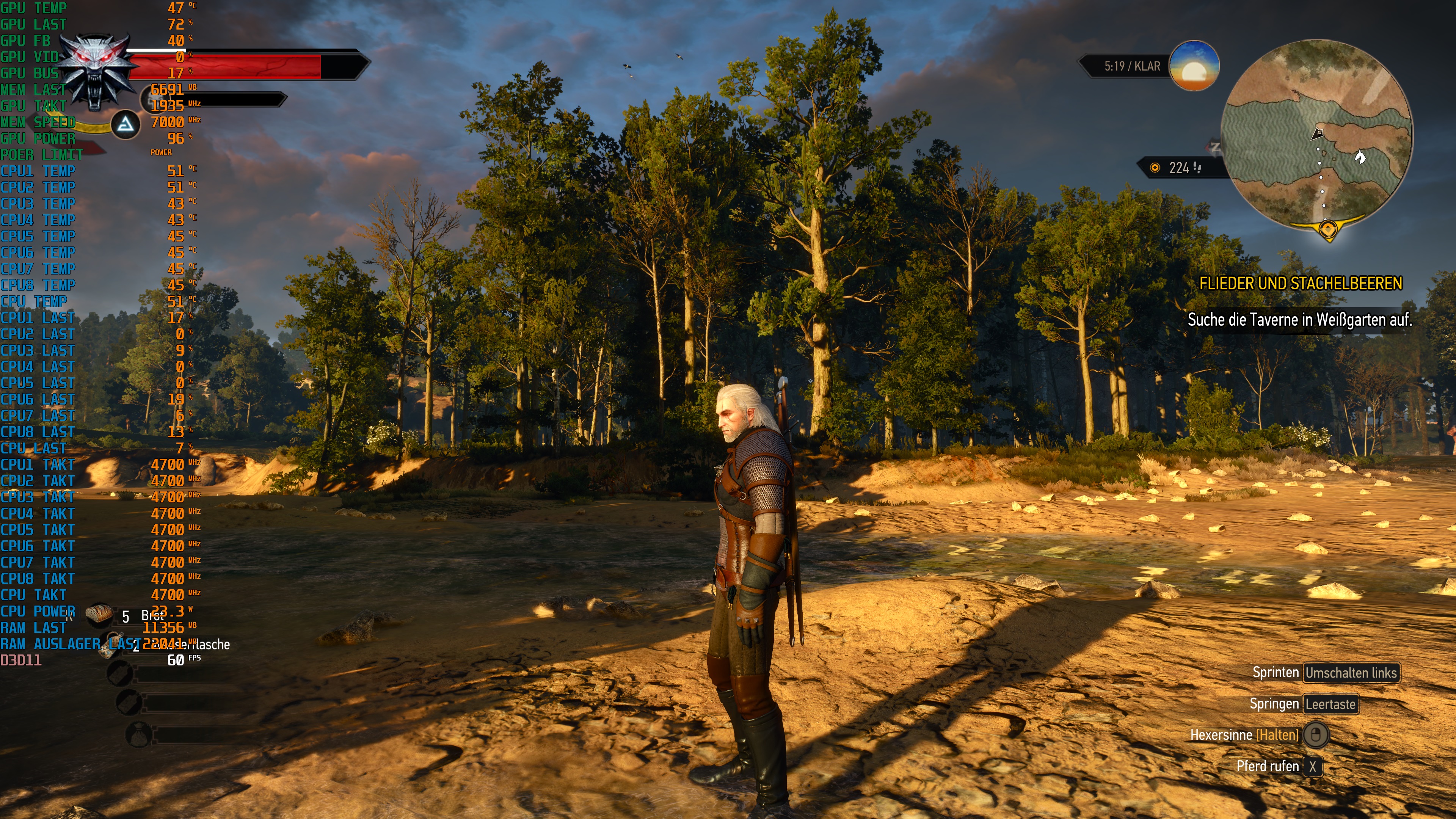Ingame Settings: 4K@60FPS, kein Vsync, Geforce optimierte Settings genommen: View Distance Epic, Shadow Quality Epic, Anti-Aliasing Epic, Texture Quality Epic, Visual Effects High, Post Processing High,