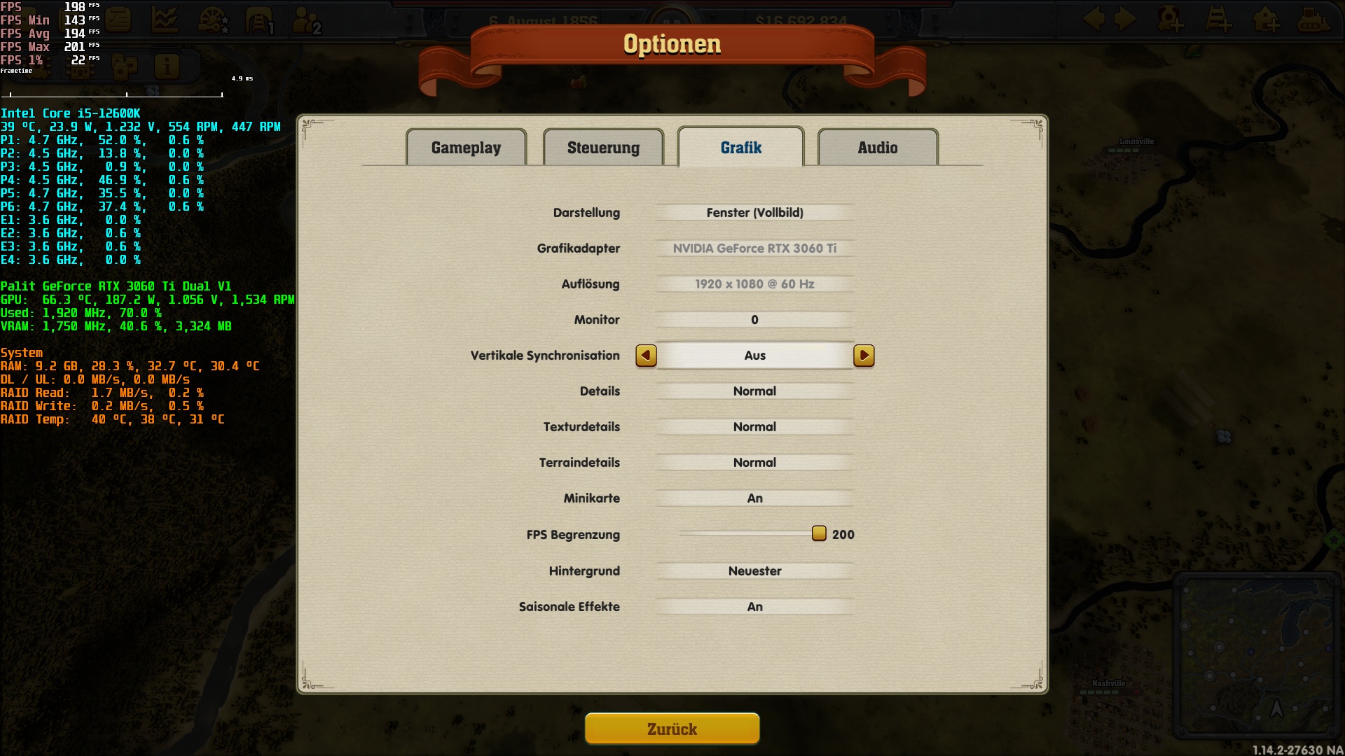 PS: Wieder mal ein Titel, der mit achtundsechzigtrilliarden FPS ins Menü startet.