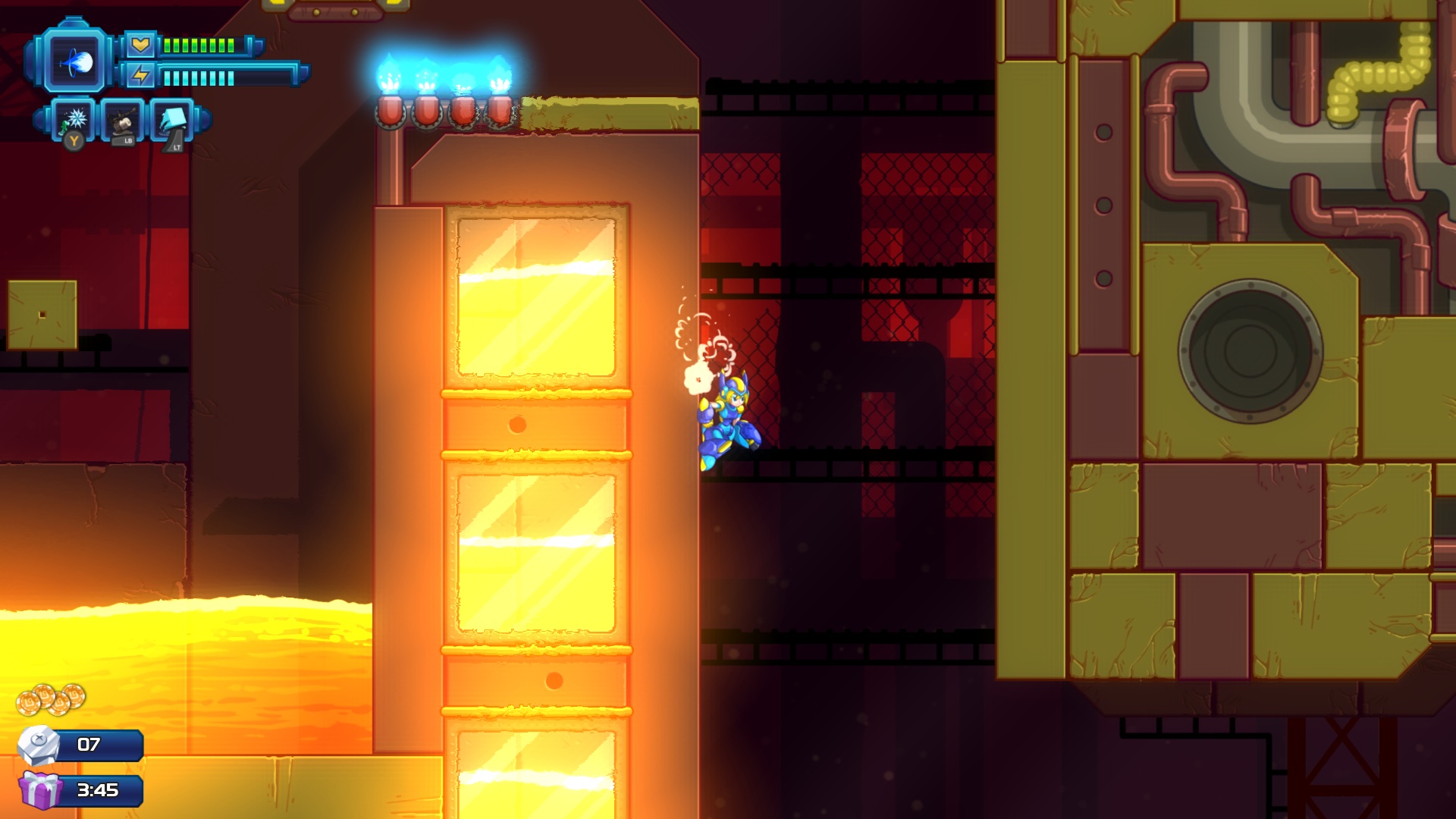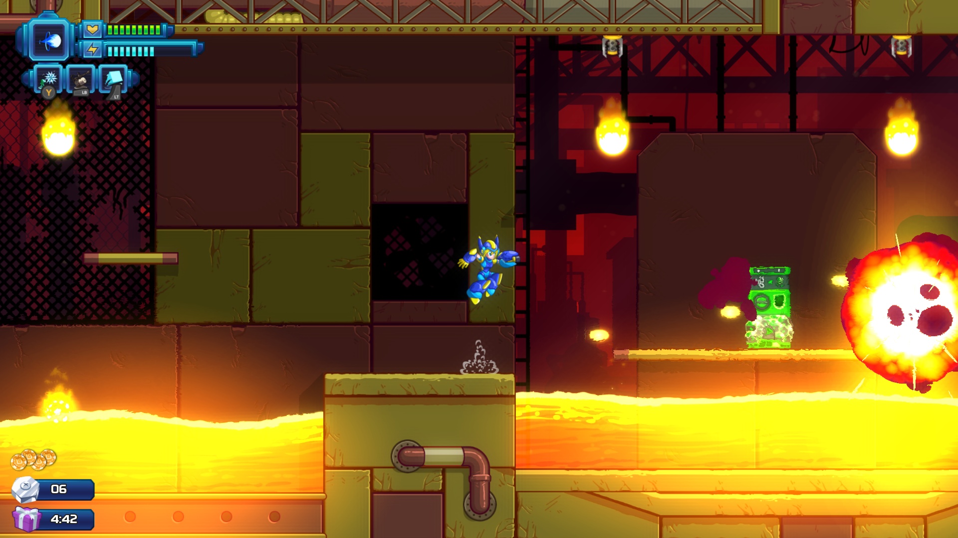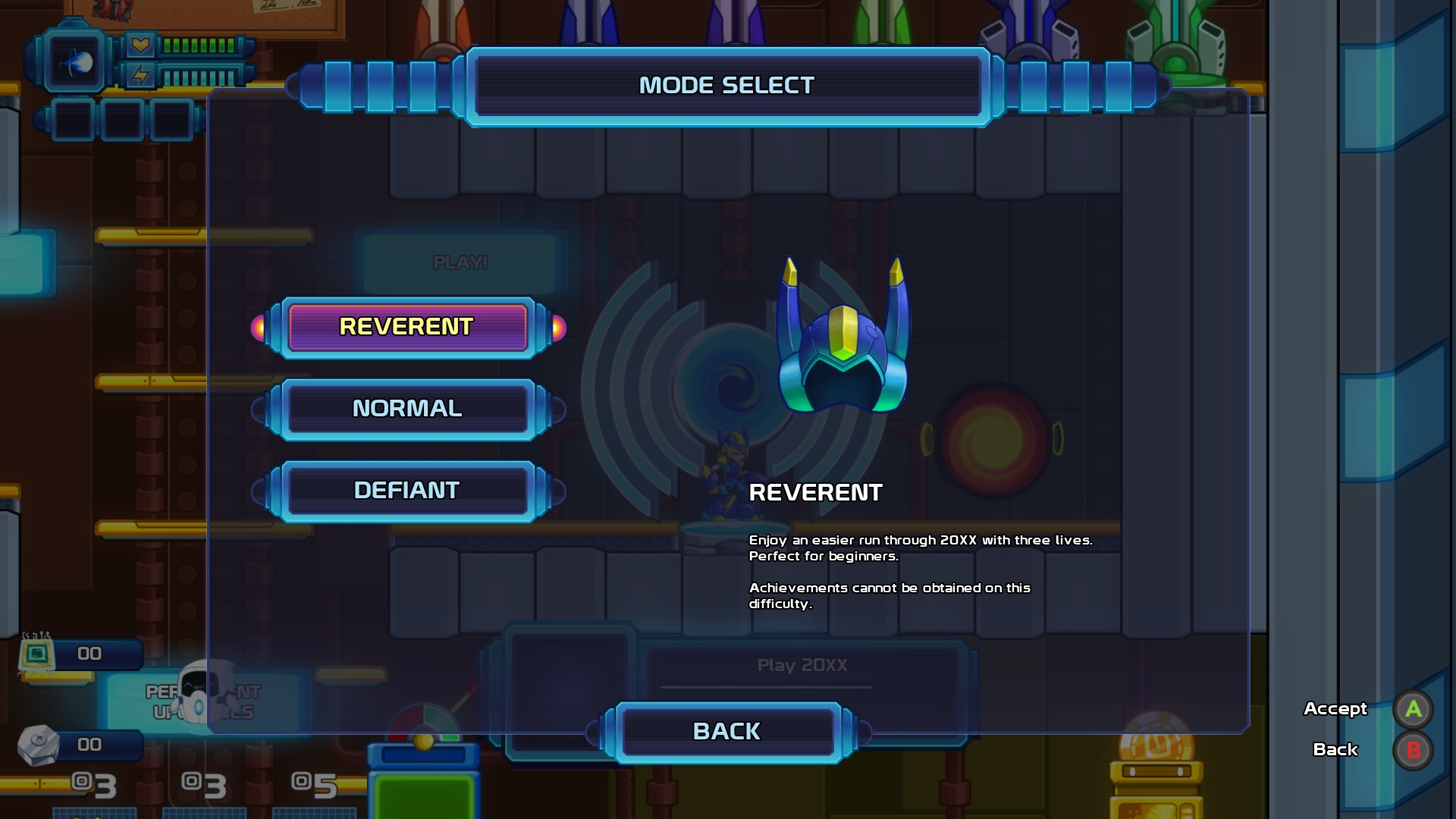 Kurz und knapp: 20XX ist ein interessanter Megaman-Klon mit prozedural generierten Leveln und einer relativ angenehmen Learning Curve bei gleichzeitig wählbarem Schwierigkeitsgrad. Dennoch habe ich nach nur einer Stunde selbst bei leichtester Einstellung regelrecht zu schwitzen begonnen.