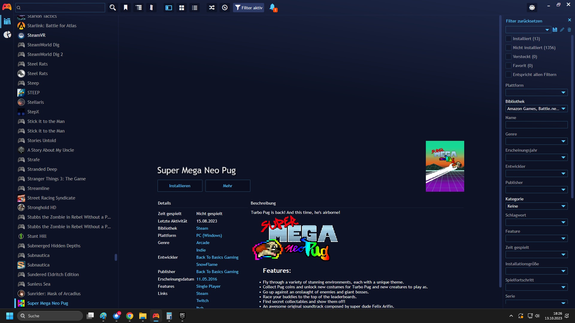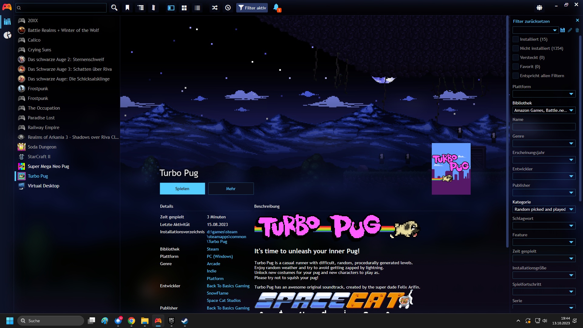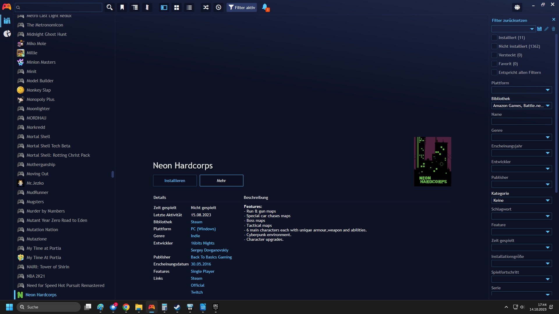 PS: Playnite hatte den "zweiten" Teil ausgewählt, weshalb ich gleich beide auf einen Schlag angetestet und direkt ad acta gelegt habe.