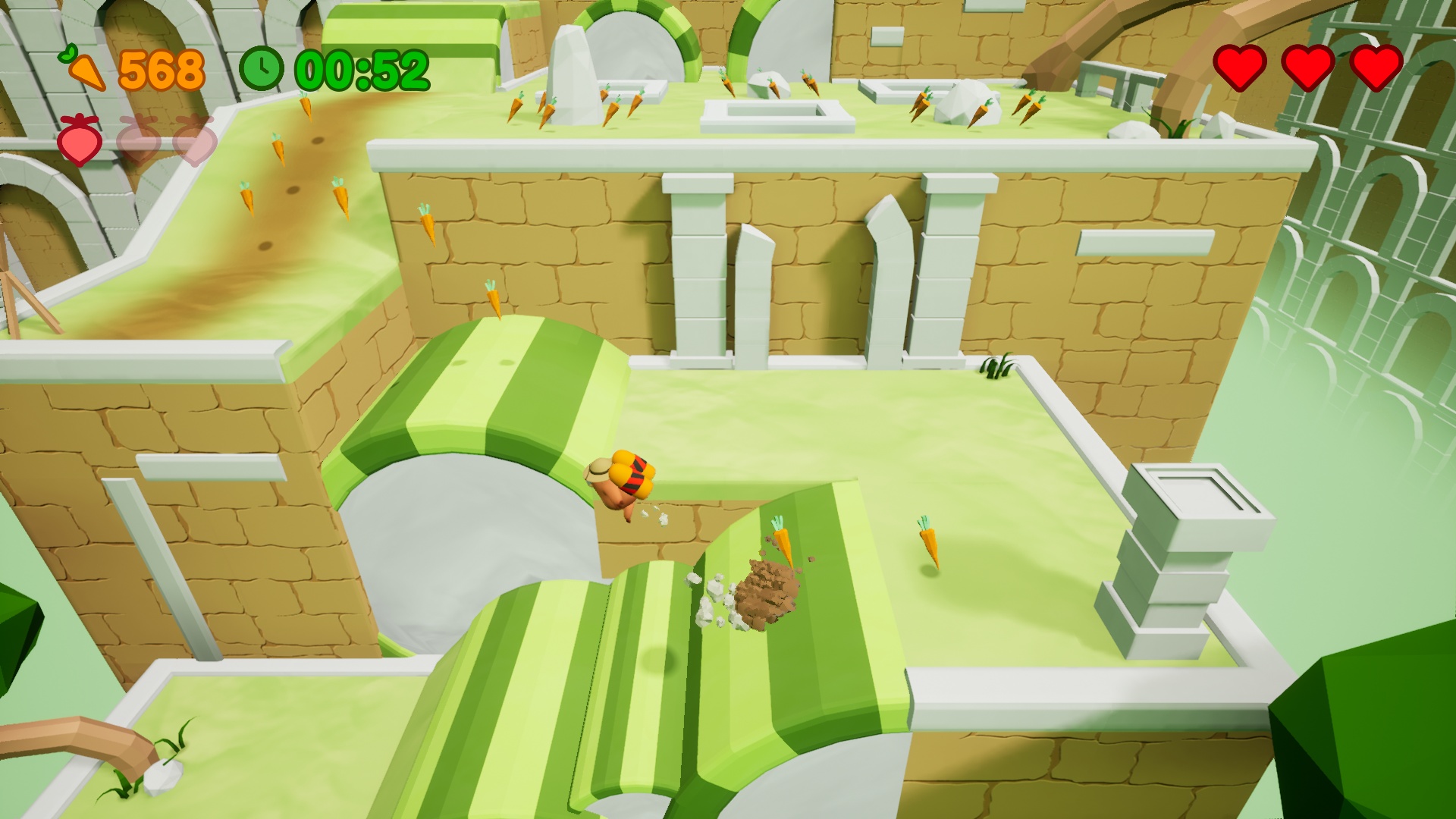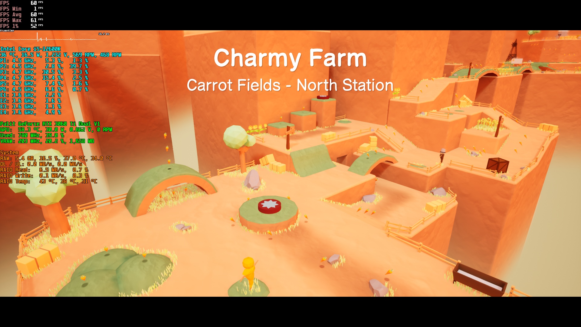 Grafisch (und auch spielerisch) erinnert das Ganze stark an Mario 64 vom Nintendo 64, wobei Mail Mole technisch überraschend gut aufgestellt ist. Die visuelle Qualität ist für ein Spiel dieser Art äußerst gut gelungen und dennoch kommt es hardwareseitig mit günstigstem Einsteigerequipment oder gar APUs zurecht. Auf einer sehr betagten GTX 1060 beispielsweise rendert das Spiel problemlos in 4K UHD und stabilen 60 FPS.