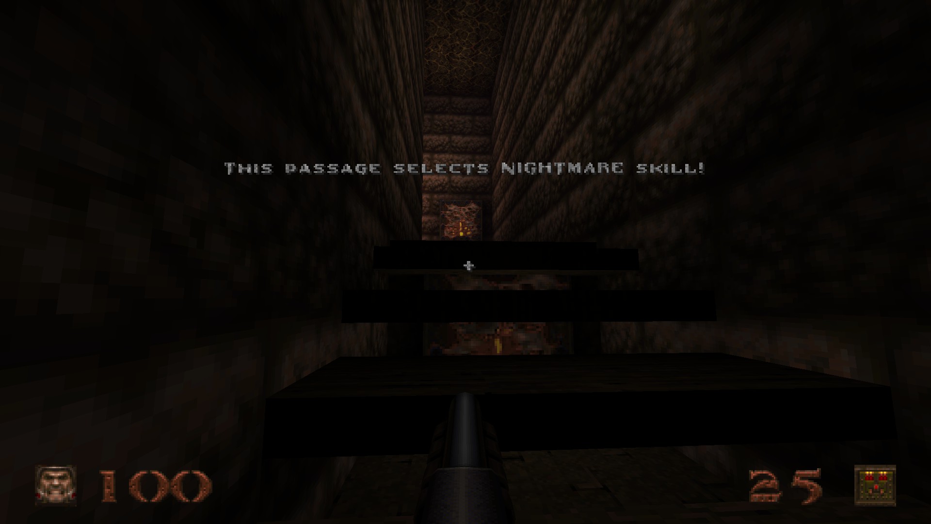 Durchgespielt habe ich das erste Quake seinerzeit auch schon und dennoch habe ich diese Situation genutzt, dasselbe heute, gute 25 Jahre später, noch einmal zu tun - jedoch im Nightmare-Skill, also dem höchstmöglichen Schwierigkeitsgrad.