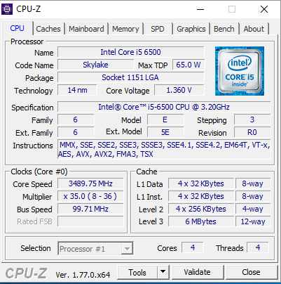 CPU: Intel(R) Core(TM) i5-6500 3.20Ghz