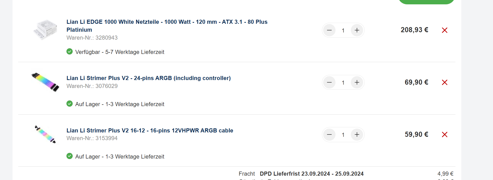 Update, sachen sind angekommen, bis auf das Netzteil von Lian li.