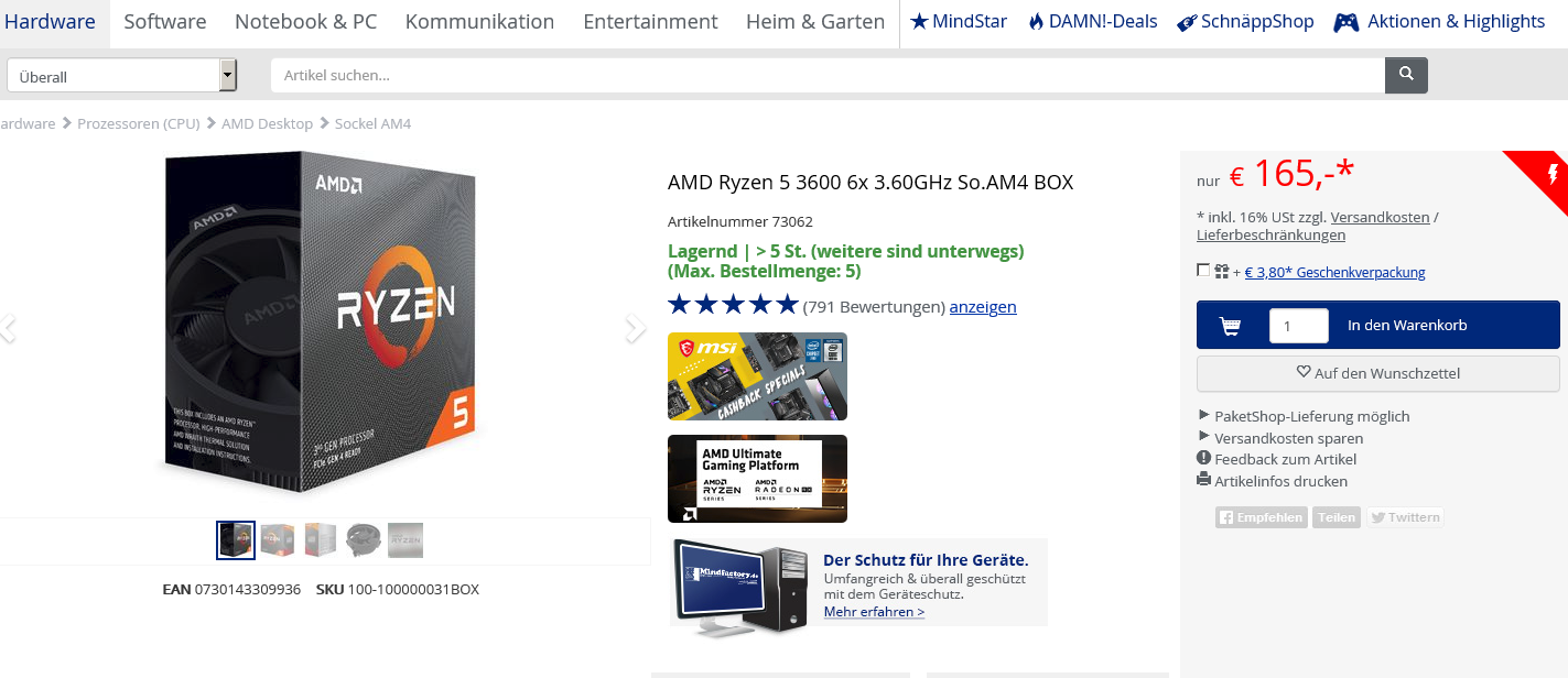 Hier liegen wir etwas über den 800 EUR, wobei wir wie gesagt auch etwas bei CPU/GPU sparen könnten, wenn wir auf dem Markt ein passendes Angebot finden. Zum Beispiel einen gebrauchten Ryzen 5 3600, oder eine alternative Grafikkarte.