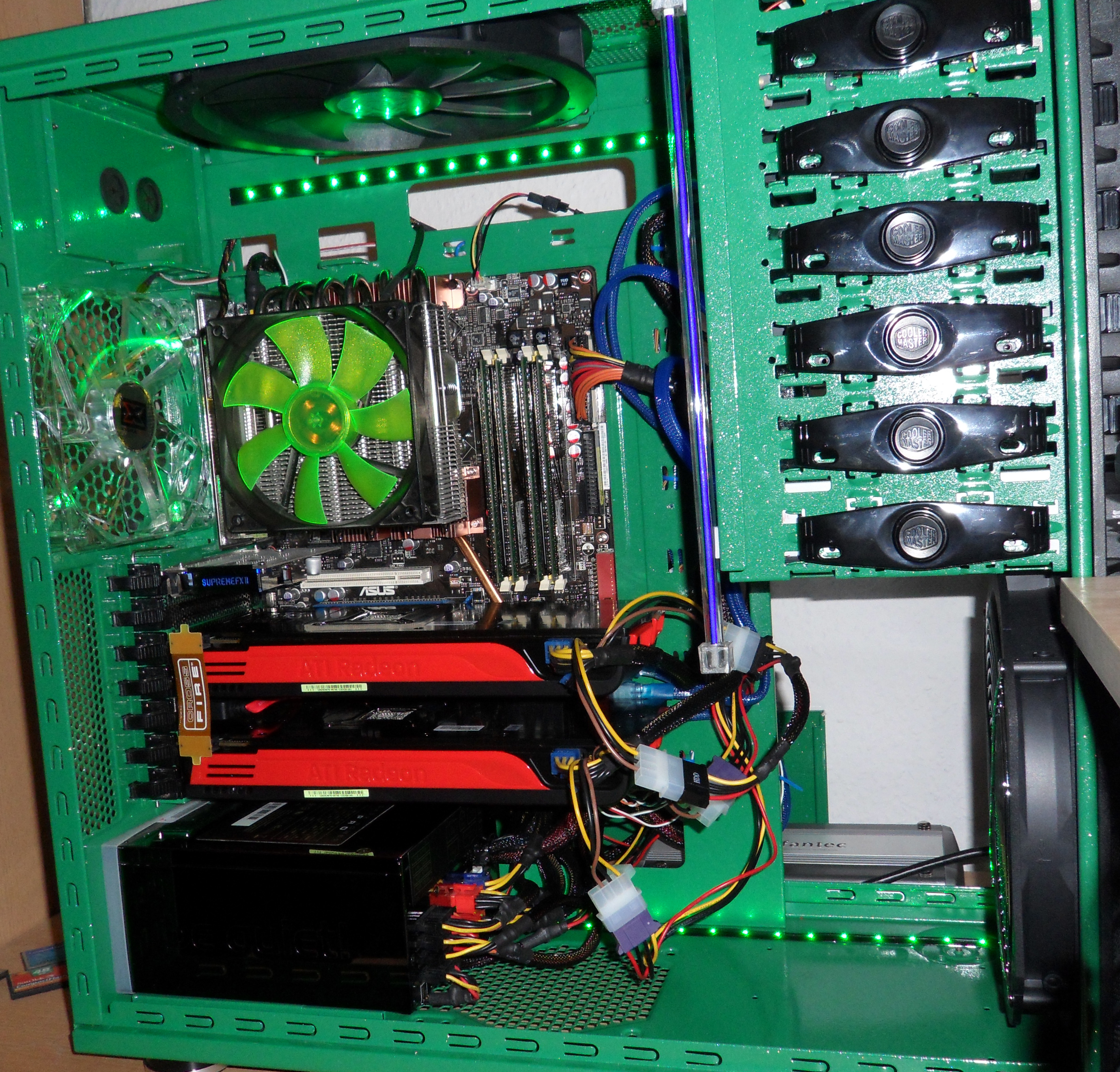 Zwei Grafikkarten (2 RX480) betreibe ich tatsächlich, aber nicht mit Crossfire. Die sind nur dafür da, dass Linux und Windows (oder 2x Linux) jeweils eine eigene GPU haben und so gleichzeitig mit vernünftiger Leistung laufen.