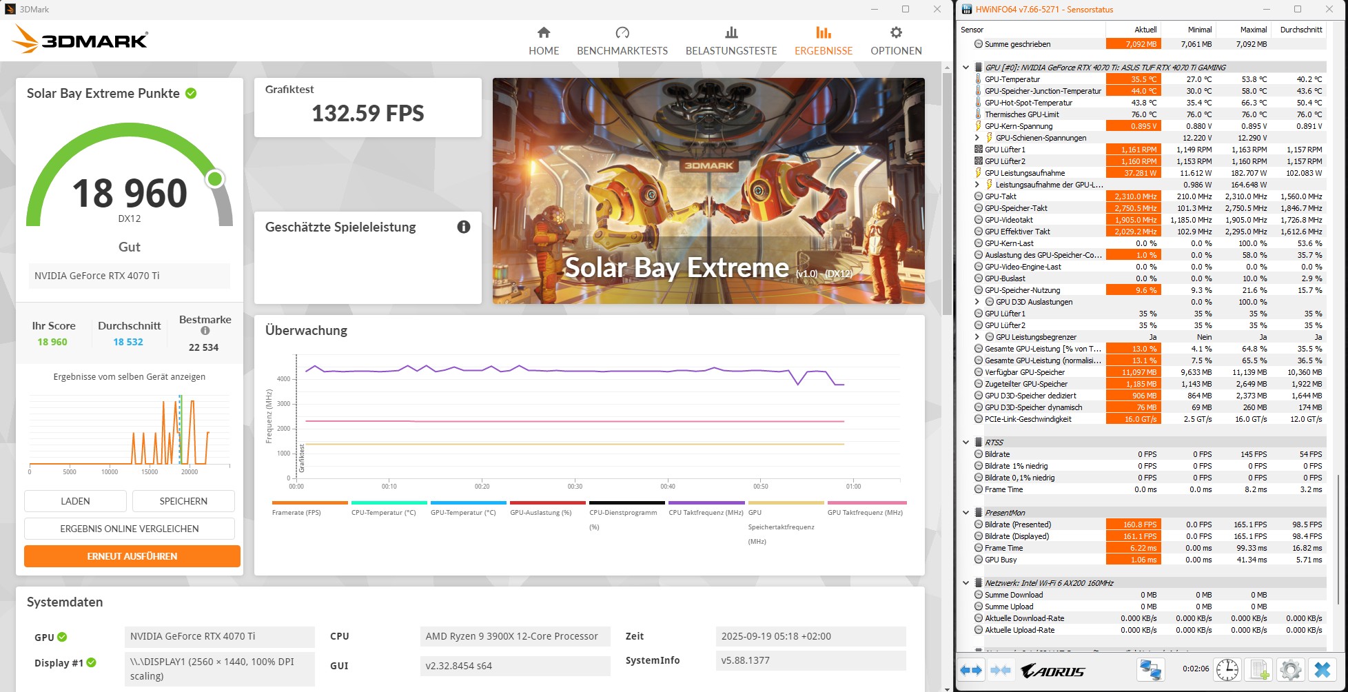 Bei der RTX 4070Ti meiner Frau ist ein optimiertes 160W Setting eingestellt. Limitiert auf 60FPS sieht das ganz gut aus.