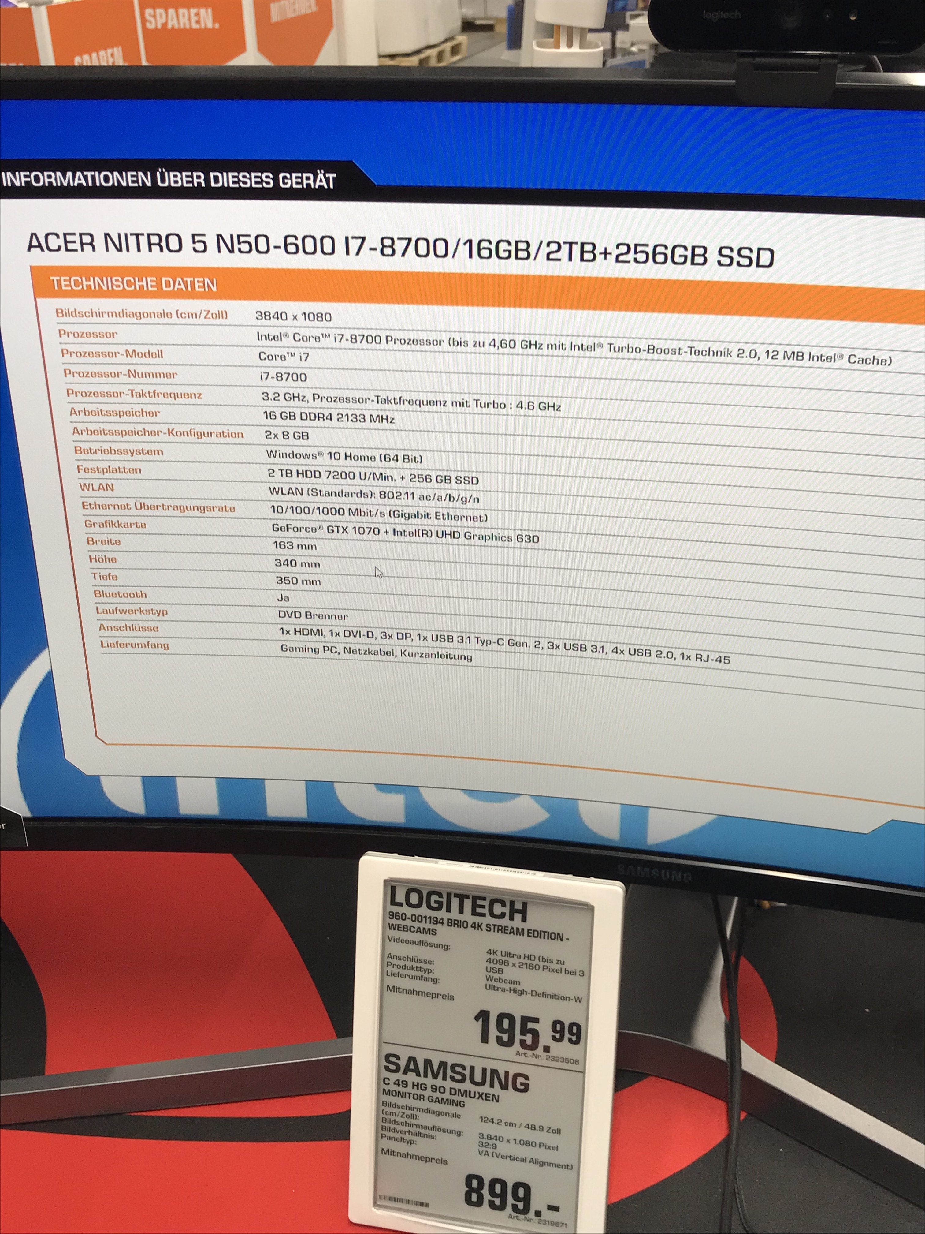 Im Laden gabs nen Desktop PC, leider fallen mir nicht alle "Specs" genau ein. Aber definitiv: 16GB RAM, Geforce GTX 1070 (der Verkäufer meinte, dass die 2000er Reihe natürlich super ist, aber viele Leute sich da uneinig sind und doch auf die 1070 oder 80 setzen weil die solide und wirklich wirklich gut sind - true soweit?), Prozessor war definitiv was aus der i7 Reihe, ich weiß leider nicht genau welche. Das ganze sollte laut Aussteller 1400€ kosten. Er meinte er könnte mit dem Preis auf 1300 runtergehen und nen akzeptablen bis guten Monitor hätte ich für 200€.