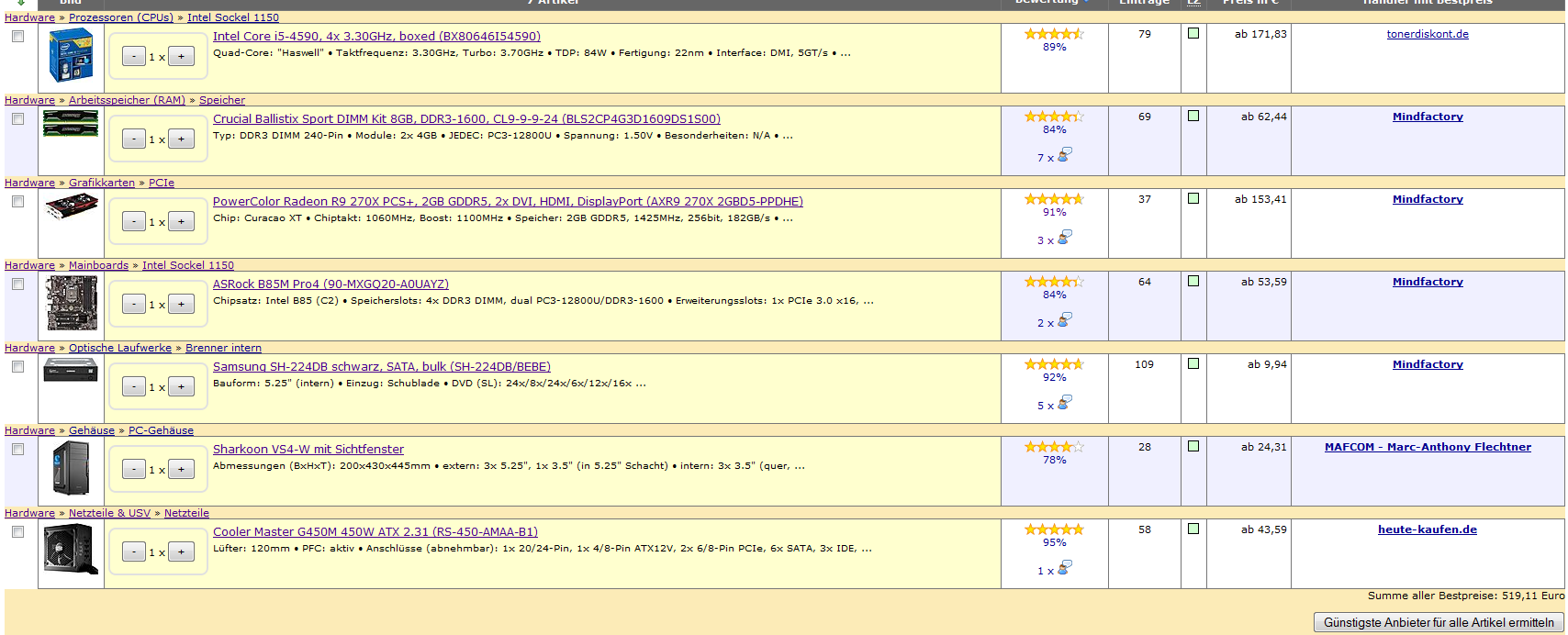 Was haltet ihr davon? Wo gibt es vorallem Einsparpotential? Möglicherweise beim Mainboard, da braucht er auch nichts dolles?!