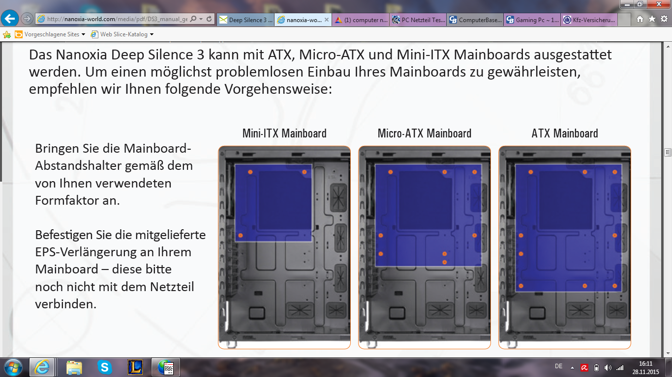 Die Abstandshalter des Mainboards hab ich, wie es in der Anleitung des Gehäuses für ATX Mainboards steht verbaut 9 Schrauben.