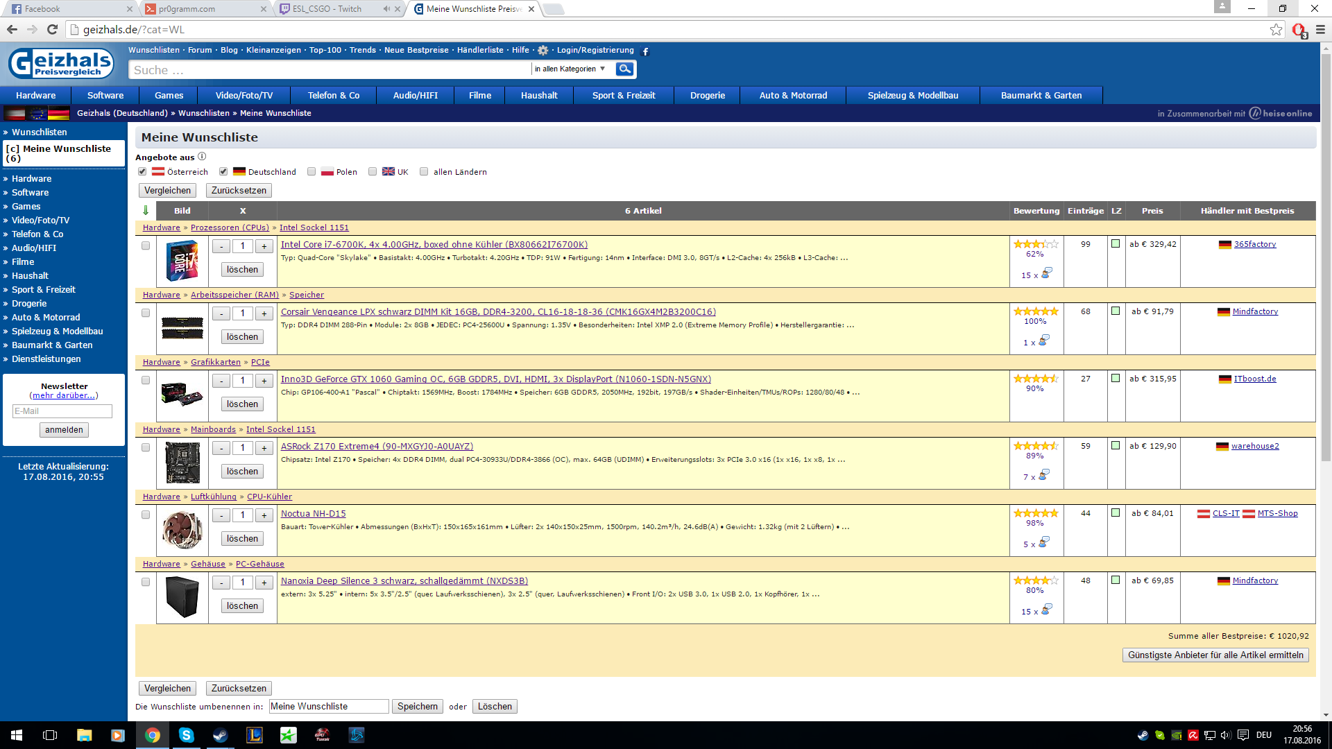 Das Mainboard, den Prozessor und den Lüfter habe ich deswegen gewählt, weil ich die CPU gerne übertakten würde. Die Bauteile sollen sich gut eignen und der Prozessor auch (hab ich gelesen, wie gesagt, ich bin kein Profi, falls ihr das nicht bis jetzt gemerkt habt
