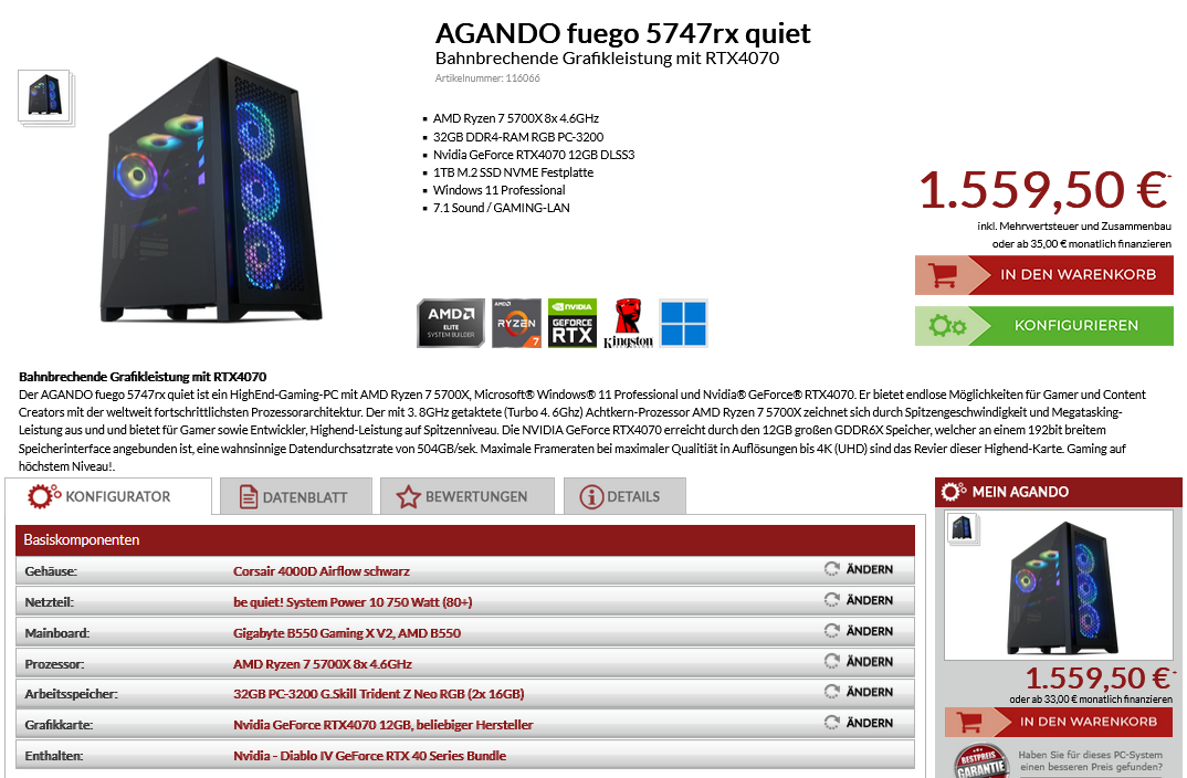 Bringt mir mehr als mich hier zu Rechtfertigen warum und wieso der PC so bestellt wird...