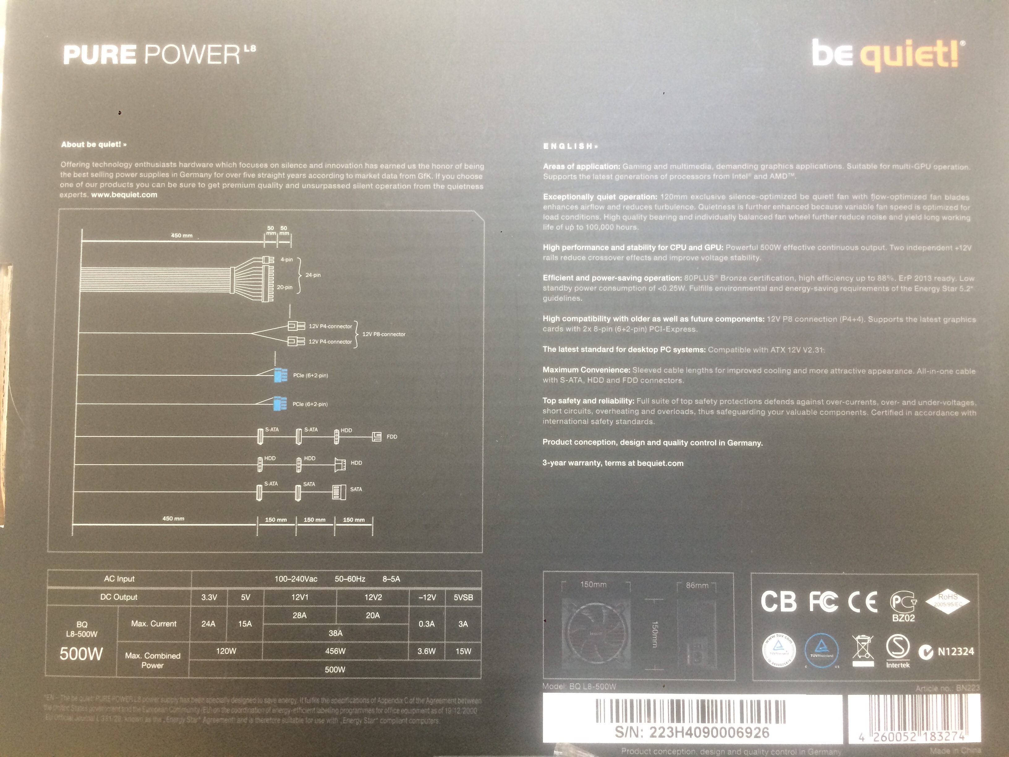 Ok, das bequiet L8 von mir wird ersetzt.