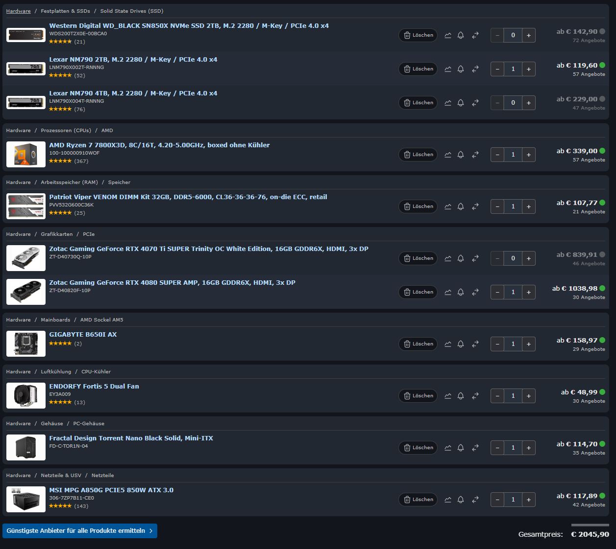 du hast noch kein gehäuse gewählt, oder?nintendoom schrieb:kannst du mir bitte eine empfehlen? ich hab hier so viele zur auswahl, von panther, windforce, gaming, etc. da bin ich leider überfordert![]()