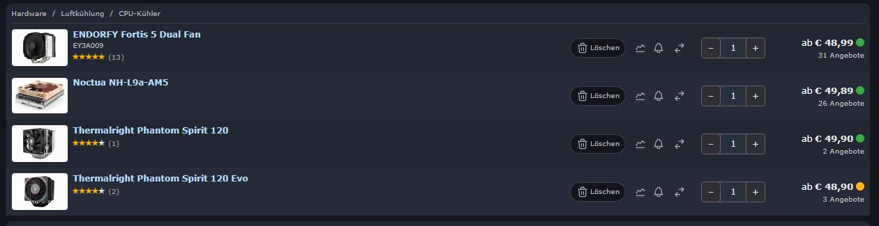 der kühler hat doch den selben preis, oder täusche ich mich?ferris19 schrieb:Kühler gegen den Phantom Spirit Evo tauschen. Der Fortis ist aktuell sehr teuer.