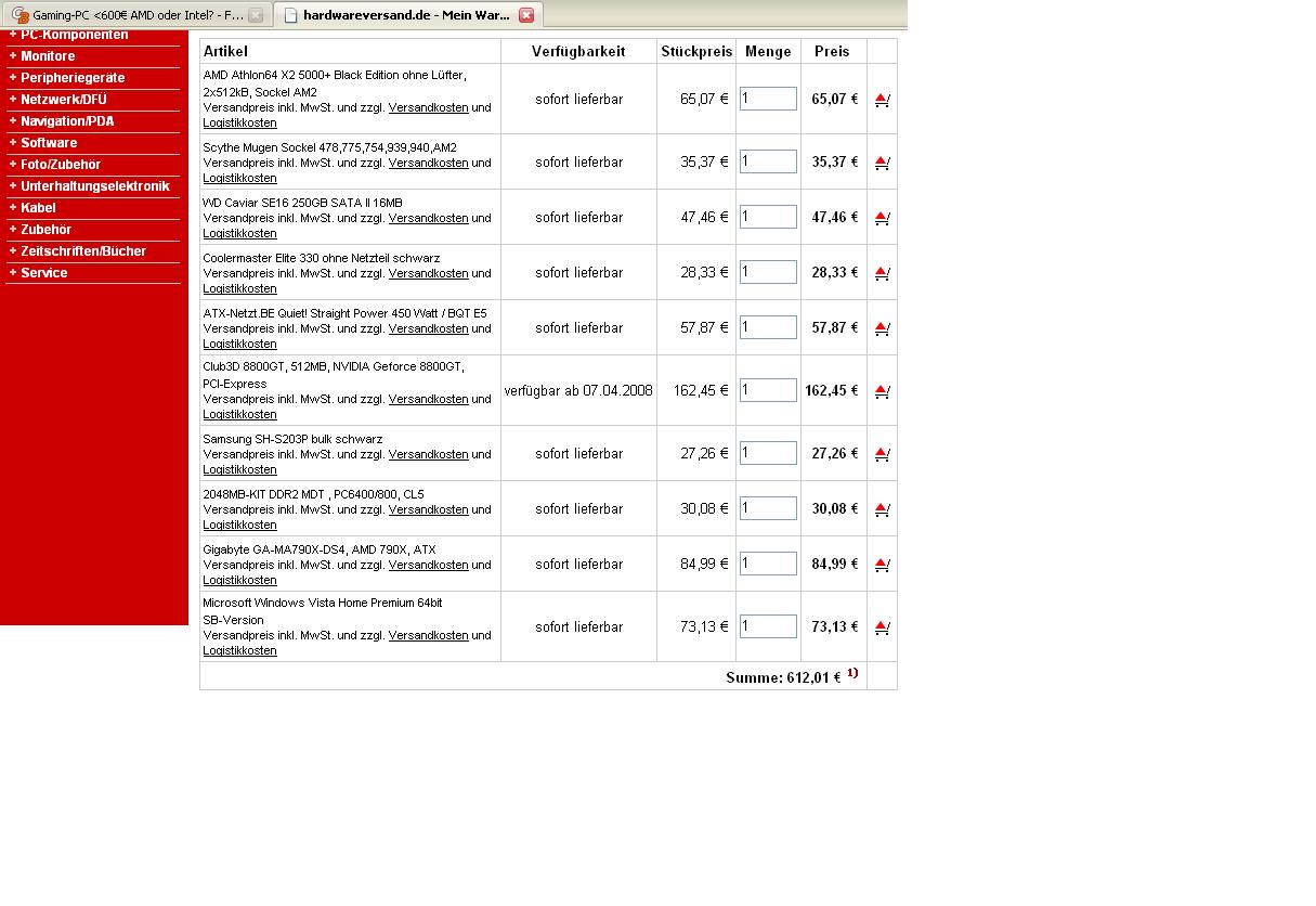 Zur Zeit tendiere ich zum AMD-System, da die Black Edition des 5000+ sehr leicht zu übertakten sein soll, das System auch günstiger ist und vielleicht so etwas zukunftssicherer sein dürfte.